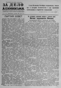 Пролитарии всех стран, соединяйтесь! ЗА Д Е Л О ЛЕНИНИЗМ А Орган Северного РК Коммунистической партии Советского Союза и рейонного Совета д е п у т а т о в трудящихся Новосибирской области № 1 28 (2 472 ) ВОСКРЕСЕНЬЕ, 23 октября 1960 г. Це на 15 коп. Слава Великому Октябрю, открывшему новую эру в истории человечества — эру кр уш е ни я капитализма и торжества социализма! (Из Призывов ЦК КПСС к 43-й годовщине Октября) П А Р Т И Я З О В Е Т Советская страна накануне* славного Октябрьского праздника. Не окинуть оком не обозреть с самой большой высоты просторы на шей любимой Родины. Но мы каждодневно видим, слышим, ощущаем мо гу чий ритм жизни своей с о циалистической Отчизны.^ { Е го установили Ленин, Великий Октябрь. Е г о постоянно поддерживает и ускоряет Коммунистическая партия С оветского Союза. Широко шагаем мы в коммунистическое завтра! И в сл е д за ленинским Центральным Комите т о м КПСС, опубликовав Ш и м Призывы к 43 й годовщине Великой Октябрьской социалистической революции,советские люди с гордостью и сердечным жаром повторяют; —Д а з д р а в с т в у е т 43-я год о вщ и н а Великой О к т я б р ь с к о й социалистиче ской революции! — С л а в а В е л и к ом у О к т я брю, о т к р ы вш ем у н о в ую эру в истории ч е л о в е ч е с т в а —эру крушения капитали зм а и т о р ж е с т в а с о циализма! Великий глашатай мира, Никита Сергеевич Хрущев еще и еще раз показал ч е л о в е ч е с т в у , наск о л ь к о близки и дороги Советской стране благородные идеи Октября—идеи мира, с в о боды и счас тья людей. —Мы посеяли на Г е н е ральной Ассамблее добрые семена, семена мира и дружбы, разоблачали ложь и сеяли семена правды,— сказал товарищ Х рущ ев на завтраке , устроенном в ч есть е г о Ассоциацией журналистов при ООН. — И как бы сейчас кое-кто громко ни кричал, чтобы заглушить голо с правды, в се равно на это не хвати т голоса. Правду не убить. Правда б у д е т т о р ж е с т в о в а ть . . . Мы не прекращаем борьбы за правд у , мы е е начали и будем продолжать. Победа будет на нашей стороне . И, словно перекликаясь Ъ этими словами, зв у ч а т над всем миром пламенные Призывы; —Да з д р а в с т в у е т ленин с к а я миролюбивая в н е ш няя политика С о в е т с к о г о С о ю з а — политика мирного с о с у щ е с т в о в а н и я г о с у д а р с т в с различным о бщ е с тв е н н ы м стр о ем , укреп ления мира и б е з о п а с н о с ти н а р о д о в , у важ ен и я их с в о б о д ы и н е зави симости , развития широких э к о н о м и ч е с к и х и к у л ь т у р н ы х К в я з е й ! —Народы в с е х с т р а н ! ( Б о р и т е с ь за мир, з а все - I общ ее и полное разору жение! Решительно р а з о б лачайте империалистичес к и х поджигателей вой н ы - в р а г о в ч е л о в е ч е с т в а ! Праздник Великого О к тября является праздником трудящихся в с е х стран. Особенно близок и радостен он для наших родных б р а т ь е в—народов стран с о циалистической системы. Мы делаем одно общее д е л о —строим новый мир. —Д а з д р а в с т в у е т м о гу чая мировая си стем а социализма — несокрушим ы й оплот мира и б е з о п а с н о сти нар одо в ! П у ст ь проц в е т а е т и к р е п н е т ве л и к о е с о д р у ж е с т в о стран социа л и с т и ч е с к о г о лагеря! Замечательными у с п е х а ми на в с е х фронтах коммунистического строительства встречают советские люди 43 ю годовщину Октября. Об этом вно вь ярко с в и д е т е л ь с т в у е т публикуемое сообщение ЦСУ при С о в е те Министров СССР. Очень хорошо идут дела в промышлен