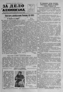 П р о л е т а р и и всех ст р а н , соеди н яйт е сь ! ЗА Д Е Л О ЛЕНИНИЗМА, Орган Северного РК К о м м у н и с т ь ч е с м й г а р т и и Ссветскс го Союза и районного Совета д е п у т а т о в т р у д я щ и х с я Новосибирской о блас ти 1960 г о д н о я б р ь 27 ВОСКРЕСЕНЬЕ № 142 ( 2486 ) Ц е н а 15 к о п . Навстречу декабрьскомуПленуму ЦККПС ___________ . Л ♦ ♦ ♦ ------------------- В борьбе за график Д е л f C п е р в ы х ж е д н е й н а ч а л а и м н е г о р е м о н т а т р а к т о р о в м е х а н и з а т о р ы Т а р т а с с к о й Р Т С н а б р а л и х о р о ш и е т е м пы . В б о р ь б е з а у с п е ш н о е в ы п о л н е н и е г р а ф и к а р е м о н т а р а б о ч и е м а ш и н н о - т р а к т о р н о й м а с т е р с к о й н а п р я г а ю т в с е у с и л и я , ч т о б ы с ч е с т ь ю в с т р е т и т ь п р е д с т о я щ и й П л е н у м Ц К К П С С . С о в с е м н е д а в н о ч е т в е р о п о с л а н ц е в Р Т С —к о м б а й н е ры Н и к о л а й Л и т в и н е н к о , Н и к о л а й П р у д н и к о в , С е р г е й Н а з а р о в и А ф а н а с и й Е ф и м о в , в ы п о л н я я в о л ю к о л л е к т и в а , п о ч т и с у т к а м и с т о я л и з а ш т у р в а л а м и к о м б а й н о в , п о м о г а я к о л х о з а м с п а с а т ь у р о ж а й . Н а их с ч е т у — с в ы ш е 1 2 0 0 г е к т а р о в у б р а н н ы х х л е б о в . А с е й ч а с эт а с л а в н а я ч е т в е р к а т а к ж е с а м о о т в е р ж е н н о т р у д и т с я на р е м о н т е т р а к т о р о в , п о к а з ы в а е т о б р а з ц ы в ы с о к о й п р о и з в о д и т е л ь н о с т и т р у д а . Н а р е г у л и р о в к е т о п л и в н ы х н а с о с о в и ш л и ф о в к е к о л е н ч а т ы х в а л о в Л и т в и н е н к о д о в е л с м е н н у ю в ы р а б о т к у д о 170 и б о л е е п р о ц е н т о в . Н а з а р о в —с л е с а р ь п о р е м о н т у у з л о в з а д н е г о м о с т а — с в о и д н е в н ы е з а д а н и я в ы п о л н я е т н е н и ж е , ч е м на 130 п р о ц е н т о в . Д о п о л у т о р а н о р м з а I с м е н у д а ё т на р а з б о р к е , ! с б о р к е и р е м о н т е т р а к т о р ны х д в и г а т е л е й р а б о ч и й мот о р н о й г р у п п ы П р у д н и к о в . Н е о т с т а е т о т т о в а р и щ е й и м о л о т о б о е ц к у з н и ц ы Е ф и м о в . В д в а с п о л о в и н о й р а з а п е р е к р ы в а е т н о р м ы на с в а р о ч н ы х р а б о т а х по р е с т а в р а ц и и з а п а с н ы х ч а с т е й э л е к т р о с в а р щ и к В. А. О с т а н ин . З а б о л ь ш о е д е л о в з я л и с ь м а ш и н и с т э л е к т р о с т а н ции М . Г. Р у д к о , т р а к т о р и с т М и х а и л В о л о х о в и ч , т е х н и к п о э л е к т р о о б о р у д о в а н и ю И . Д . С б и т н е в и т е х н и к - м е х а н и к Е . Д . Д о в г у л е в . Ч т о б ы б ы с т р е е о б е с п е ч и т ь б е з о с т а н о в о ч н у ю р а б о т у м а с т е р с к о й , о н и р е ш и л и к 5 д е к а б р я з а к о н ч и т ь п о д г о т о в и т е л ь н ы е р а б о т ы к м о н т а ж у в т о р о й с и л о в о й у с т а н о в к и и с е й ч а с з а в е р ш а ю т з а л и в к у ф у н д а м е н т а д л я д и з е л ь н о г о д в и г а т е л я и г е н е р а т о р а . В э т о м д е л е м о н т а ж н и к а м б о л ь ш у ю п о м о щ ь о к а з а л к о н ю х Г . М . К о в а л е н к о , к о т о р ы й п о с о б с т в е н н о м у п о ч и н у з а о д и н д е н ь и з г о т о в и л о п а л у б к у д л я з а л и в к и ф у н д а м е н т а и этим н а м н о г о у с к о р и л п р о ц е с с з а л и в к и . а л е с о р у б о в Л е с о р у б ы К а с м а н с к о г о у ч а с т к а С е в е р н о г о л е с х о з а п о л н ы м х о д о м в е д у т з а г о т о в к у и в ы в о з к у л е с а К м е с т ам с п л а в а д о с т а в л е н ы п е р в ы е 400 к у б о м е т р о в д о б р о т н о г о с т р о е в о г о л е с а . В к л ю ч и в ш и с ь в с о р е в н о в а н и е в ч е с т ь п р е д с т о я щ е г о П л е н у ма Ц е н т р а л ь н о г о К о м и т е т а н а ш е й п а р т и и , б р и г а д а л е с о з а г о т о в и т е л е й в с 