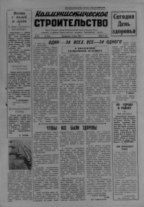 П Р О Л Е Т А Р И И В С Е Х С Т Р А Н , С О Е Д И Н Я Й Т Е С Ь Вести с полей и лугов ★ В ДНИ У Д А Р Н О Г О М Е С Я Ч Н И К А Включившись в ударный месячник по заготовке кор мов, члены сельхозартели «Сибирь» усилили трудовое н а п р я ж е н и е . На л у га выведено 1 6 сенокосилок и много другой т е х н и к и . На 7 июля в скирды уложено 5 5 0 0 центнеров сена. Не отстают и полеводы сельхозартели «Побед а» . На последнем месте по- п режнему колхозы имени X X I с'езда КП СС , имени Ленина, Северо-Т ата рский и К и евский совхозы. О Б Р А Б О Т А Н О 15 Г Е К Т А Р О В Недавно прошел воскреснин по обработке сахарной свеклы в деревне Уснюль (ферма № 5 Увальск ог о совхоза). На у ч а сток вышло 9 7 рабочих. Среди них были и пенсионеры тт. Розбаум, Метус , Сталь, Сакс и Строкова. Они трудились наравне р молодыми. За день у ч а с тн и к и воскресн и к а обработали вручную более 1 5 гектаров посевов. Выработка каждого составила две нормы. Н . Л О К Т Ю Ш И Н А , 'заведующая библиотекой. ПЕРЕВЫПОЛНЯЮ Т НОРМЫ Полным ходом идет заготовка кормов на ферме № 5 Первомайского совхоза. Сено подбирается с лугов и «разу отвозится к животноводческим корпусам . Трак тористы А. Хоботов, И. Непомнящ их и А. Золотухин работают с большим ' перевыполнением норм. В. ПЕТРОВ . СТАВРОПОЛЬСКИЙ КРАЙ. В ко лхоза х и совхозах Ставрополья идет уборка богато го у р о жая озимой пшеницы и ячменя. Пред стоит уб р а т ь зерновые с площади в полтора милли она гектаров — на триста тысяч больше «прошлогоднего, сдать гос ударств у 75 миллионов пудов хлеба. На полях работают 3 620 самоходных и прицепных комбайнов, пер еоборудованных для работы на свал, 2 650 «тарных жаток. П о дорогам Ставрополья вереницами потянулись тысячи автомашин с зерном нового урожая. Н а элеваторы и хлебоприемные пункты приняты тысячи тонн хлеба. Ш шшшшяичеаш СТРОИТЕЛЬСТВО О р ган Т а т а р с к о г о горкома Коммунистической партии Со ветского С о ю з а , городского и районного С оветов депутатов трудящихся Ново сибир ской области. № 8 3 ( 4 7 3 4 ) . I Воскресенье, 9 июля 1 9 6 1 г . Ц ена 2 коп . С самого начала соревнования за звание коллектива коммунистического труда наши рабочие доставили цель максимально механизировать трудоемкие операци по ремонту воздухораспределителей, усилить борьбу за культуру на производстве и навсегда искоренить пережитки прошлого в какой бы форме они не проявлялись. Кое-чего мы у«ксдобились. Не так давно все детали к рабочим местам переносились вручную. Сейчас достаточно рабочему нажать кнопку управления, как они уже будут у него перед глазами. Или еще: полтора месяца назад детали промывались керосином. Это отрицательно влияло на здоровье людей. Нынче обмывку стали проводить горячей водой в специальной герметически закрывающейся ванне. Потмо Ъри помощи электромотора деталь обдувают сжатым воздухом. А ведь и эта операция когда-то производилась примитивным способом. Ранее резиновые самоуплотняющиеся кольца вставляли в ручей концевого крана вручную за 35— 40 минут. Теперь эта работа благодаря приспособлению, сделанному токарем Владимиром Сараевмь,г выполняется за 5— 6 минут. Коллектив борется за культуру труда. Рабочие покрасили пол, оконные рамы О Д И Н — ЗА В С ЕХ , ВСЕ— ЗА ОДНОГО В К О Л Л ЕК ТИ В Е РАЗВЕДЧИКОВ БУДУЩЕГО и все оборудование, за первое полугодие провели мноог субботников и воскресников по благоустройству и озеленению территории, по на