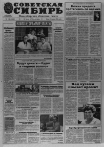 Газета основана $ 1 октября 1919 года. Новосибирская областная газета № 1 3 0 ( 2 3 2 4 5 ) 1 6 ию ля 1 9 9 8 г . , ч е т в е р г Ц е н а 5 0 к о п . ( 5 0 0 р у б . ) н н в м П о Ровени Премьер - ■Новосибирске В ночь с 14 на 15 июля 1 9 9 8 года председа те ль С о в е т а М и н и с тров Р Ф С . В . К и р и е н к о , воз вращ аясь из К итая , сделал кратк ую о с тановк у в Ново си бирск е. В а э р о п о р т у Т о л м а ч е в о п р е д с е д а т е л я П р а в и т е л ь с т в а Р Ф в стр е ч а л глав а администрации Н о во сиб ир с ко й о б л а с ти В . П. Муха . В б есед е С . В . Кириен ко и В . П. М у х а о б м е н я л и с ь м не ниями о финансовой ситуации в с т р а н е . Г л а в а а д м и н и с т р а ции о б л а с т и проинформировал С . В . Кириенко об о б с т а но вк е в области , о мерах , принимаемых администрацией по с т а б и л и з а ц и и ф и н а н с о в о г о п о л о ж е н и я , о м е р о п р и я т и я х п о в ы п о л н е н и ю с о г л а ш е н и я м еж д у П р а в и т е л ь с т в о м Р Ф и а д м и н и с т р а ц и е й о б л а с т и по о з д о р о в л е н и ю ф и н а н с о в о й с и с т е м ы Н о в о с и б и р с к о й о б л а с т и , п од пи са н н о м у 7 июля 1 9 9 8 года. В . П. М у х а о х а р а к тери зо вал финансовую о б с т а н о в к у в о б л а с т и к а к в е с ь м а сложную , кот ор ая , од нако, нах о д и т с я п о д к о н т р о л е м . М ер ы , кот орые предпринимае т а д м и н и с т р а ц и я о б л а с т и , п озволяю т надеяться на пер спективу относите ль ной с т а б и лизации. Исходя из динамики с о б и р а ем о с т и н а л о г ов и других плат ежей, в ав густе и с е н т я б р е о ж и д а ю т с я оп р е д е л е н ные положите льные сд ви г а . МОСКВА. Президент РФ Бо рис Ельцин встретился с бы вш и м п р е м ь е р - м и н и с т р о м , н ы н е ш н и м л и д е р о м движения «Наш дом — Р оссия» Виктором Черномырдиным в заг ородн ой р е зи д ен ции « Г о р к и -9 » . О п р е д п о л а г а ем ой встрече президента с Виктором Черномырдины м с от р у дн и к и п р е зи д е н т с к о й адм и ни ст р а ци и уж е говорили журналистам, не с о о б щ а я е е конкрет ной п овестки дня . Как п о л а г а ют, на этой неформальной в ст реч е г л а в а г осу дар ст ва о б с у д и л с бы вш и м п р е м ь ером нынешние финансово- э к о н о м и ч е с к и е п р о б л е м ы Р о с с и и . О д н а к о в п р е с с - с л уж б е П р ези д е нт а РФ на просьбу ИТАР-ТАСС от казались подтвердить или опр о в е р г н у т ь с о о б щ е н и е о б этой встрече. МОСКВА. В х о д е з а в е р ш и в ш е г о с я о ф и ц и а л ь н о г о двухдневного визита в Я п о ни ю п р е д с е д а т е л я П р ави тельст ва РФ Сергея Кирие н к о с о с т о я л и с ь о б с т о я т ел ьны е пер ег ов оры, котор ы е прошли в д ружествен ной и ко нструктивной о б с т а н о в к е . О б э т о м г о в о р и т с я в п о с т у п и в ш е м в И Т А Р -Т А С С с о в м е с т н о м коммюнике по итогам визит а . Р о с с и й с к и й п р е м ь е р имел ау ди енцию у импер атора Японии Акихито, пров е л п е р е г о в о р ы с п р ем ь ер - мини стром Рют а р о Хасим от о , г л а в о й в н еш н е п о л и тического ведомства Кэйд- з о Обути и м и н и с т р о м в н е ш н е й т о р г о в л и и п р о мышленности Мицуо Хори- ути, встретился с л и д е р а ми д еловы х кругов Японии. ( И Т А Р - Т А С С ) . «Зим ний» ш т аб дей ст вует К а к сообщает пресс-центр мэрии, активно действует го родской штаб по подгот ов ке к зиме: на кажд ом заседании т р и — четыре района отчитыв а ю т с я о х о д е р е м о н т н ы х р а б о т на м а г и с т р а л ь н ы х и в н у т р и к в а р т а л ь н ы х т е п л о т р а с с а х , на ЦТП и б о й л е р ных, ведомственных и муниципальных котельных. Тщательному анализу подв е р га ю т с