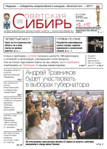 Четвертый мост Грант на его строительство область ни в коем случае не должна упустить Стр. 2 Гуляем по Луне Разработки новосибирских ученых находят широкое применение в космической отрасли Стр. 15 Издание — победитель всероссийского конкурса «Золотой гонг — 2017» № 17 (27589) 25 апреля 2018 года, среда ПОГОДА Потепление в регионе оказалось недолгим, сейчас идет смещение атмосферного фронта, несущего холодные воздушные массы. Дожди будут усиливаться Cтр. 3 +3...+17 Аграрии области получат дополнительную поддержку Стр . 7 Как наполнить рынок качественными и недорогими продуктами? Стр . 7 Новые механизмы позволят ускорить решение проблем обманутых дольщиков Стр . 13 Учитель года Марина Прохорова: «Дети сейчас не почемучки, а «зачемки» Стр . 16 История успеха: подсчитывая, прибыль, он не мог спать от счастья Стр . 26 Статья о проблемах с оплатой питания в школе № 199 взволновала и читателей, и организации, участвующие в этом процессе. Они не только подготовили ответы на наш запрос, но и потребовали опубликовать их. Публикуем. С нашими комментариями Стр. 5 Бюджет региона увеличился. На что пойдут деньги? Стр. 2 Андрей Травников будет участвовать в выборах губернатора Об этом решении глава региона объявил 23 апреля на встрече с рабочими авиационного завода имени Чкалова Cтр. 3
