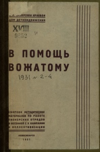 «. <. ^.иИРСКИИ КРАЕВОМ ДОМ ДЕТКОМДВИЖЕНИЯ В П О М О Щ Ь В О Ж А Т О М У и л / V г - 4 БОРН ИН МЕТОДИЧЕСКИХ АТЕРИАЛОВ ПО РА БОТЕ ИОНЕРСКИХ ОТРЯДОВ ВЕСЕННЕЙ С X КАМПАНИИ КОЛЛЕКТИВИЗАЦИИ НОВОСИБИРСК 19 3 1
