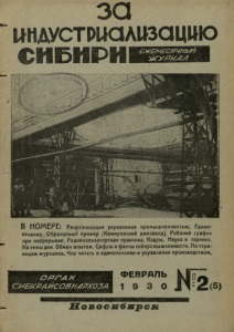 за индустриализацию СНБНРНЕШЗЯ ЕЖЕМЕСЯЧНЫМ Ж У Р М У ! В НОМЕРЕ: Реорганизация управления промышленностью. Едино началие. Образцовый пример (Кемеровский химзавод). Рабочий график при непрерывке. Рационализаторская практика. Кадры. Наука и техника. На темы дня. Обмен опытом. Цифры и факты сибпромышпенности. По стра ницам журналов. Что читать о единоначалии и управлении производством. ФЕВРАЛЬ 1 9 3 0 Л : ^ ( 5 ) №2 О Р Г А Н СИБКРАЙСОВН4РХОЗА Н о в о с и б и р с к