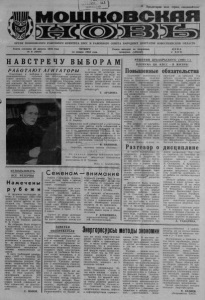 Л'аШ Ь ' - ЗАЛ ПЕРКОДИКИ Пролетарии всех стран, соединяйтесь! ж мошковскяя ОРГАН МОШКОВСКОГО РАЙОННОГО КОМИТЕТА КПСС и районн о го со в е т а н а р о д н ы х д еп у та то в н о в о с и б и р с к о й о б л а с т и Газета основана 23 августа 1931 года № 6 (4816) ЧЕТВЕРГ, Газета выходит по вторникам, Ц Е Н А 12 января 1984 года. четвергам, субботам. 2 КОП. НАВСТРЕЧУ ВЫБ ОР АМ Р АБОТ АЮТ А ГИТ А ТОРЫ Подготовка к выборам в Новомошковском сельском Совете началась с оформления соответствующей наглядной агитации. На всех производственных участках прошли собрания по выдвижению членов участковых избирательных комиссий. Утверждены руководители агитколлективов. Агитпунктами руководят заведующая библиотекой Эмма Андреевна Юнусова, киномеханик Виктор Михайлович Ноль, учителя коммунисты Екатерина Ильинична Плута- лова и Екатерина Григорьевна Привалова. В состав агитколлективов включены 33 агитатора, все они не первый год ведут эту общественную работу. С аги таторами был проведен инструктаж, распределены десяти- дворки. Свою работу они начали с составления списков избирателей. Т. АРАПОВА. Накануне Нового года партком совхоза «Восход» совместно .с исполкомом Кайлинского сельского Совета народных депутатов провели семинар с агитаторами и заведующими агитколлективами. На этом же семинаре избрали заведующими агитпунктами: в Кайлах — директора клубного объединения Л. И. Туркову, в Елтыщеве — заведующую, клубом Е. И. Ларичеву, в Глядени — пенсионерку И. II. Кирюту. Оформлены клуб избирателей и агитпункты. Составлен план работы клуба избирателей и агитколлектива. Вывешены календари на улицах и нщшроизводственных 'участках. В трудовых коллективах прошли собрания, на которых были выдвинуты: представители в состав избирательных кокцбсйй. Агитаторы заканчивают составление списковой] беседуют с избирателями. . . . * _____ • В. БАРИНОВ, секретарь парткома совхоза «Восход». ♦ * * Н а с п и м к е: директор Кайлинского клубного объединения, заведующая Кайлинским агитпунктом Л. И. Туркова. Фото С. КАЗАКОВА. ИСПОЛЬЗОВАТЬ ВСЕ РЕЗЕРВЫ Н а м е ч е н ы р у б е ж и В трудовом коллективе рабочих и служащих ПМК-1169 проведено собрание по подведению итогов работы за прошедший год. Отмечено, что коллектив успешно справился с доведенными заданиями по основным производственным показателям. Названы имена передовиков, в их числе плотник П. И. Крылатов, бригадир А. М. Тимшин, рабочая В. Е. Сухих. На собрании были вскрыты и недостатки, главными из которых являются недостаточно четкая организация труда, большие потери рабочего времени, связанные с пьянкой и прогулами. Рабочие еще не включились в активную борьбу за экономию и бережливость. Допущен перерасход строительных материалов и топлива, энергетических ресурсов. В свете требований декабрьского (1983 г.) Пленума ЦК КПСС проанализированы неиспользованные резервы. Принимая социалистические обязательства на 1984 год, трудовой коллектив наметил сэкономить 18 тысяч штук кирпича, 17 тонн цемента, 600 килограммов металла, 500 кв/час электроэнергии. Это станет возможным только благодаря четкой, слаженной работе строителей, их заинтересованности в общем успехе дела. С. ПОПОВ. Семенам — внимание Работа с семенами по-прежнему должна быть в центре внимания агрономическ и х служб, полеводов. Хорошо обстоят дела в совхозе «Зеркальный». Это единственное хозяйство район