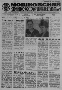 Пролетарии всех стран, соединяйтесь! ОРГАН МОШКОВСКОГО РАЙОННОГО КОМИТЕТА КПСС и рай о н н о го со в е та н а р о д н ы х д еп у та то в н о в о с и б и р с к о й о б л а с т и Газета основана 23 августа 1931 года СУББОТА, Газета выходит по вторникам, Ц Е Н А № 13 (4823) 28 января 1984 года. четвергам, субботам. 2 КОП. Р е ш е н и я д е н а б р ь с н о г о ( 1 9 8 3 г . ) П л е н у м а Ц П Н П С С — в ж и з н ь ! Отроить быстро и качетсвено Декабрьский (1983 г.) Пленум ЦК КПСС обратил особое внимание на необходимость улучшения организации строительных работ, концентрации сил и средств на .пусковых объектах, обеспечения быстрейшего ввода в действие и освоения новых производственных мощностей. В 1983 году перед коллективом Мошковского хозрасчетного строительного участка стояли большие задачи по капитальному строительству. За год освоено по генподряду 2 миллиона 287 тысяч рублей при плане 1 миллион 904 тысячи рублей, в том числе собственными силами — 912 тысяч рублей вместо плановых 900 тысяч рублей. Сданы в эксплуатацию 1589 квадратных метров жилья, поликлиника, гараж на 25 автомашин, силосная траншея и другие объекты. Однако в работе коллектива имели место серьезные недостатки, использованы не все резервы. Не на должном уровне трудовая и производственная дисциплина. Отрицательно сказываются перебои в снабжении строительными материалами.. Так, бригадой мы брали обязательство завершить кладку стен общежития на .340 мест, но из-за отсутствия кирпича не смогли справиться с ним. Плохо налажена Два года назад коллективы московских промышленных предприятий выступили с инициативой: производить текущий ремонт вагонов и контейнеров, освободившихся после выгрузки и прибывших ПОД погрузку, отправлять вагоны только в исправном состоянии. Она нашла широкую поддержку и распространение в коллективах промышленных предприятий страны, в том числе и нашей области. Почин москвичей, имеет важное народнохозяйственное значение. Ремонт вагонов силами заказчиков позволяет наиболее полно использовать технические средства железной дороги и способствует увеличению погрузочных ресурсов для нужд народного хозяйства. Промышленными предприеще работа с субподрядными организациями, случаются простои механизмов. В 1984 году коллективу участка необходимо освоить более трех миллионов рублей, ввести в эксплуатацию собственную базу, два шестидесятиквартирных дома, котельную, наружные сети, пристройку к детскому саду, плавательный бассейн, жилые дома в совхозах «Мошковский» и «Ояшинский», силосную траншею. Предстоит большая и ответственная работа по выполнению планов, принятых обязательств. Наша бригада каменщиков решила завершить кладку общежития в апреле и приступить к строительству второго общежития. Вот уже второй год мы боремся за звание коллектива коммунистического труда. Лучшие каменщики бригады В. А. Авакумов, В. В Бурдаков, В. П. Ефимов, И. Н. Федотов ежедневно выполняют норму на 110— 115 процентов. В этом* году частично перешли на подрядный метод, что, надеемся, поможет дгАиться более высоких результатов. В, ПЕТРОВ, бригадир каменщи к о в Мошковского хозрасчетного строительного участка. У д о б н о , выгодно ятиями города Новосибирска и области, обслуживаемых Новосибирским отделением За- падно - Сибирской железной дороги, за 1983 год было отремонтировано немалое количество вагонов и контейнеров. Однако 