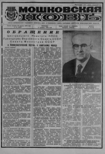 Пролетарии всех стран, соединяйтесь! к М О Ш Н О В С ОРГАН МОШКОВСКОГО РАЙОННОГО КОМИТЕТА КПСС и р а й о н н о г о с о в е т а н а р о д н ы х д е п у т а т о в н о в о с и б и р с к о й о б л а с т и Газета основана 23 августа 1931 года № 20 (4830) ВТОРНИК, 14 февраля 1984 года. Газета выходит по вторникам, четвергам, субботам. Ц Е Н А 2 КОП. О Б Р А Щ Е Н И Е Ц е н т р а л ь н о г о К о м и т е т а К П С С , П р е з и д и у м а В е р х о в н о г о С о в е т а С С С Р , С о в е т а М и н и с т р о в С С С Р к Коммунистической партии, к советскому народу Дорогие товарищи! I Коммунистическая партия Советского Союза, весь советский народ понесли тяжелую утрату. Оборвалась жизнь выдающегося деятеля ленинской партии и Советского государ- ■тва, пламенного патриота социалистической i ^.годины, неутомимого борца за мир и коммунизм Юрия Владимировича Андропова. Его жизнь — образец беззаветного служения интересам партии и народа, великому делу Ленина. На всех постах, где по воле партии трудился Юрий Владимирович Андронов, он отдавал свои силы, знания, огромный жизненный опыт неуклонному осуществлению политики партии, борьбе за торжество коммунистических идей, качества крупного политического руководителя ярко проявились во всей многогранной деятельности Ю. В. Андропова — на .комсомольской работе и а организации партизанского движения в Карелии в годы Великой Отечественной войны, на ответственнейших участках партийной и дипломатической деятельности. Много труда вложил он в укрепление безопасности нашего государства. Со всей силой выдающиеся способности и организаторский талант товарища Андропова — руководителя ленинского типа — раскрылись в его работе на постах Генерального секретаря ЦК КПСС и Председателя Президиума Верховного Совета СССР. Короткий срок довелось Ю. В. Андропову возглавлять Центральный Комитет КПСС. Но за это время партия, следуя курсом XXVI съезда, творчески обогащая его, обеспечила уверенное продвижение страны на всех направлениях экономического и социального прогресса. Важными вехами в жизни партии и народа, в укреплении их нерушимого единства ,летали ноябрьский (1982 г.), июньский и декабрьский (1983 г.) Пленумы ЦК КПСС. В решениях Пленумов, в выступлениях Ю. В. Андропова была развита и конкретизирована (современная стратегия партии — стратегия совершенствования зрелого социализма. В этот период усилия партии и народа были сконцентрированы на ускорении развития экономики, на улучшении управления народным хозяйством, укреплении партийной, государственной и трудовой дисциплины, повышении ответственности кадров, на развитии творческой активности масс. Принятые партией меры подчинены одной цели — росту (благосостояния -советских (Людей, усилению могущества Советского государства. Во всем этом велики заслуги Юрия Владимировича Андропова. Значителен вклад Ю. В. Андропова в развитие всестороннего сотрудничества стран социалистического содружества, в укрепление единства и сплоченности международного коммунистического и рабочего движения, в поддержку борьбы народов за свободу и независимость. Под его руководством ЦК КПСС и Советское государство последовательно и настойчиво осуществляли на международной арене ленинский внешнеполитический курс — курс на устранение угрозы термоядерной войны, на твердый отпор агрессивным проискам империализма, на упрочение мира 