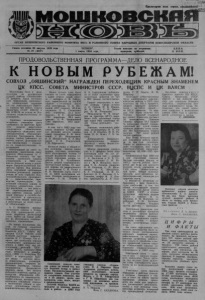 Пролетария всех стран, соединяйтесь! ОРГАН МОШКОВСКОГО РАЙОННОГО КОМИТЕТА КПСС и р а й о н н о г о с о в е т а н а р о д н ы х д е п у т а т о в н о в о с и б и р с к о й о б л а с т и Газета основана 23 августа 1931 года № 27 (4837) ЧЕТВЕРГ, Газета выходит по вторникам, 1 марта 1984 года. четвергам, субботам. Ц Е Н А 2 К О П . ПРОДОВОЛЬСТВЕННАЯ ПРОГРАММА—ДЕЛО ВСЕНАРОДНОЕ К НОВЫМ РУБЕЖАМ! СОВХОЗ „ОЯШИНСКИЙ“ НАГРАЖДЕН ПЕРЕХОДЯЩИМ КРАСНЫМ ЗНАМЕНЕМ ЦК КПСС, СОВЕТА МИНИСТРОВ СССР, ВЦСПС И ЦК ВЛКСМ Многолюдно было в Доме культуры на центральной усадьбе совхоза «Ояшинский» 27 февраля. Здесь состоялся слет передовиков производства, посвященный вручению сое гозу переходящего Красного знамени ЦК КПСС, Совета Министров СССР, ВЦСПС и ЦК ВЛКСМ за успехи во Всесоюзном социалистическом соревновании. Горячими аплодисментами встретили участники слета прибывших на вручение Красного знамени заместителя председателя облисполкома, председателя областного агропромышленного объединения Анатолия Григорьевича Неза- витина, членов районного комитета партии, делегацию совхоза «Большевик» — соперника по социалистическому соревнованию. Выступивший на слете передовиков , заместитель председателя облисполкома А. Г. Незавитин отметил, что труженики племенного совхоза «Ояшинский» в 1983 году внесли большой вклад в реализацию Продовольственной программы партии. Под руководством партийной организации совхозом достигнуты хорошие успехи во всех отраслях сельскохозяйственного производства — животноводстве, полеводстве, строительстве. Выполнение совхозом планов по основным показателям, отметил докладчик, — это результат самоотверженного груда всех рабочих совхоза, работников торговли и службы быта, учителей и школьников, словом, всех людей, живущих и работающих на земле совхоза «Ояшинский». А. Г. Незавитин призвал тружеников совхоза в четвертом году одиннадцатой пятилетки закрепить достигнутый успех, выйти на новые рубежи во Всесоюзном социалистическом соревновании. От имени коллектива совхоза со словами сердечной благодарности Центральному. Комитету КПСС, Совету Министров СССР, ВЦСПС и ЦК ВЛКСМ выступил директор совхоза Б. Г. Шмидт. Он отметил, что труженики совхоза «Ояшинский» напряженно трудились в 1983 году над выполнением решений XXVI съезда КПСС, майского (1982 года), июньского и декабрьского (1983 г.) Пленумов ЦК КПСС, и переходящее Красное знамя — высокая заслуга животноводов, полеводов, механизаторов, шоферов, работников стройцеха, главных специалистов, специалистов среднего звена. Это заслуга районного комитета партии, руководства объединения «Н о восибирское» по свиноводству, шефов совхоза, которые систематически оказывали помощь в выполнении планов и принятых коллективом совхоза социалистических обязательств. Много теплых слов было сказано на слете передовиков в адрес лучших людей совхоза — свйнарок Л. Ф. Гибель- гаус, вырастившей за год 836 поросят с отъемным весом 20,2 килограмма, О. И. Ш угаевой (807 поросят, 20,2 килограмма), Е. Г. Степановой (803 поросенка, 21,1 килограмма), Т. В. Кузютчевой (703 поросенка, 20,1 килограмма), 3. Ф. Чичилановой (784 поросенка, 19,5 килограмма). В том, что в 1983 году совхозом получено 12 428 поросят, большая заслуга принадлежит свинаркам В. Ф. Богачевой, С. Ф., Мельниковой, В. Н. Михайловой, Н. А. Маркиной, Л. Н. Говоруновой, Г. В. Ефременко. Большой вклад в общий 