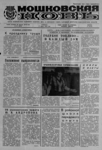 Пролетария всех стран, соединяйтесь! ОРГАН МОШКОВСКОГО РАЙОННОГО КОМИТЕТА КПСС и районн о го с о в е та н а р о д н ы х д епу тато в н о в о с и б и р с к о й о б л а с ти Газета основана 23 августа 19 31 года № 34 (4844) СУББОТА, 17 марта 1984 года. Газета выходят по вторникам, четвергам, субботам. Ц Е НА 2 КОП. ПОЗЫВНЫЕ СУББОТНИКА ЗАВТРА - ДЕНЬ РАБОТНИКОВ ЖИЛИЩНО-КОММУНАЛЬНОГО К п р а здн Инициативу передовых московских предприятий по проведению Всесоюзного коммунистического субботника в честь 114-й годовщины со дня рождения В. И. Ленина единодушно поддержал коллектив нашей станции. Создан штаб по организации и проведению субботника. В состав штаба вошли руководители среднего звена. "Решено в день субботника основной массе работников трудиться ца своих рабочих местах, часть людей займется благоустройством территории станции. КАК ЗИМОВКА? Положение Животноводы колхоза «Союз строителей» не выполнили план продажи молока государству за 2 месяца. Много молока на зачете было потеряно из-за его низкой жирности. Особенно плохо обстояли дела на ферме отделения № 2, где, к примеру, план продажи молока в феврале был выполнен менее чем на 90 процентов. С кормами на фермах колхоза в нынешнюю зимовку не полный порядок. Меньше, чем в других хозяйствах района, дается коровам концентратов (1 килограмм плюс 300 граммов на каждый надоенный литр), силоса (его приходится закупать из других хозяйств — сами впрок заготовить не смогли), сено зачастую дается коровам некачественное, заготовленное из перестоявшей травы. Кормоцех как не работал, так и не работает, несмотря на все заверения главного инженера. Все это и сказалось на планах. Сейчас в хозяйстве принимаются кое-какие меры для того, чтобы в марте ликвидировать отставание от плана, сделать все возможное для успешного завершения первого квартала года. ику т р у д а Сейчас члены штаба уточняют конкретные задания для каждого подразделения, каждого труженика. Все заработанные деньги будут перечислены в фонд одиннадцатой пятилетки. На заседании штаба субботника решено также подготовить к дню праздника труда красочную наглядную агитацию. По ходу субботника бу- ‘дут выпущены фотомонтаж, «молнии», где назовем имена наиболее отличившихся. А. ЧЕРВОНЕЦКИИ, начальник железнодорожной станции Мошково. выправляется Квартальный план по продаже молока —3400 центнеров. По подсчетам главного зоотехника Валентины Александровны Черниковой, план будет даже чуть перекрыт, увеличится и процент жирности молока. Дойное стадо колхоза расположено на двух отделениях — в Балте и в Вороново, причем на центральной усадьбе коров в четыре раза больше. Бригадиром дойного гурта здесь Ольга Федоровна Старкова — опытный руководитель среднего звена. Именно с работой животноводов, которых она возглавляет, связывают в колхозе успешное выполнение квартального плана. Хорошие надои в марте в группах доярок Веры Алексеевны Санниковой (9,2 килограмма от коровы в сутки), Лидии Арсентьевны Кульменевой (8,7), Галины Газмиевны Хасанши- ной (8,5), Валентины Серафимовны Акимовой (8,4 килограмма от коровы). Ежесуточные надои по колхозу составляют сейчас 8 килограммов от коровы, но они растут, и у животноводов «Союза строителей» есть уверенность: квартальный план будет выполнен. С. ЛЕОНЮК. Об увековечении памяти Ю. В. АНДРОПОВА Учитывая исторические заслуги выдающего