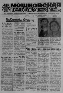 Пролетарии всех стран, соединяйтесь! №мошковскня ОРГАН МОШКОВСКОГО РАЙОННОГО КОМИТЕТА КПСС и районного совета н а ро дны х депутатов новосибирской области Газета основана 23 августа 1931 года № 38 (4848) ВТОРНИК, 27 марта 1984 года. Газета выходит но вторникам, четвергам, субботам. ЦЕНА 2 КОП. О б с у ж д е н о на партийном с о б р а н ии Приближается очереди а я хлеборобская кампания — весенний сев. Сейчас партийная организация нашего совхоза основное ' внимание уделяет тому, чтобы посевные работы прошли в сжатые сроки и с высоким качеством. Так, на прошедшем 19 марта партийном собрании цеховой парторганизации управления были заслушаны коммунисты: агроном Н. Т. Русакова, инженер-механик Л. М. Щека о ходе подготовки к весенне-полевым работам. В их отчетах и выступлениях коммунистов сказано о том, что в достаточном количестве, заблаговременно был засыпан семенной материал, в ближайшие дни будет начата его подготовка к посеву. Завезено необходимое количество минеральных удобрений, продолжается вывозка на поля органических. Продолжается также восстановление и отладка техники. Одновременно с посевной ведется ремонт сенозаготовительной и хлебоуборочной техники. Партийная организация направляет на ответственный участок работы коммунистов С. А. Думрауфа и Л. Н. Харина, которые будут заняты непосредственно на подготовке почвы и посеве зерновых. На очередном заседании бюро планируется рассмотреть вопрос «О массово-политической работе и организации культурно - бытовых условий в период весенне-полевой кампании». А. НАПРИМЕРОВ, секретарь парткома совхоза «Белоярский». В с т р е ч а ю т во всеоружии Во всеоружии встречают . весну механизаторы Локтин- ского отделения совхоза «Бар- лакский». С осени отремонтирован и поставлен на хранение весь посевной и почвообрабатывающий инвентарь. 14 из ^ т р а к торов и комбайнов отремонтированы. Постарались в сжатые сроки подготовить свой МТЗ коммунист А. И. Кайзер, К-700 — В. А. Алексеев, А. А. Гебель. На восстановлении гусеничных были заняты и семейные династии — отцы и сыновья: Евгений Ильич и Владимир Евгеньевич Кургановы, Васи.-лй Алексеевич, Владимир Васильевич Сизико- вы. Второй сын В. А. Сизико- ва Александр ремонтировал зерновой комбайн. Быстрому проведению ремонтных работ способствовало то, что механизаторы отделения бережно относятся к своим тягачам, своевременно проводят техуходы. В настоящее время механизаторы заняты на других участках совхозного производства. А. ЗАЛЕТСКАЯ, бухгалтер Локтииского отделения совхоза «Варлак- ский». К п о л е в ы м р а б о т а м Ремонтники районного объединения «Сельхозтехника» с начала нынешнего года для хозяйств района восстановили 22 трактора и 24 комбайна. Успешно трудятся на ремонте трансмиссий в цехе № 1 слесари Б. А. Бекещев, А. В. Тихонович и другие. Рабочие объединения могли бы отремонтировать еще большее количество тракторов, но их мало отправляют к нам из некоторых хозяйств, как .например, из совхоза «Сосновг ский». И. АГЕЕВ, управляющий районным объединением «Сельхозтехника». Неплохих результатов в социалистическом соревновании добиваются многие животноводы совхоза «Смоленский». Так, телятница первого отделения Зоя Петровна Гусель- никова получила за два месяца этого года среднесуточный привес каждого животного своей группы 801 грамм. Более 200 килограммов молока 