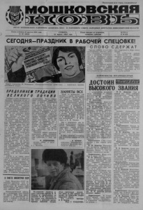 Пролетарии всех стран, соединяйтесь! ОРГАН МОШКОВСКОГО РАЙОННОГО КОМИТЕТА КПСС и р а й о н н о г о с о в е т а н а р о д н ы х д е п у т а т о в н о в о с и б и р с к о й о б л а с т и Газета основана 23 августа 1931 года j СУББОТА, 1 Газета выходит по вторникам, Ц Е Н А № 49 (4859) 21 апреля 1984 года. 1 четвергам, субботам 2 КОП. СЕГОДНЯ-ПРАЗДНИК В РАБОЧЕЙ СПЕЦОВКЕ! Плакат художника дительность труда!». И. Коминарца «Коммунистическому субботнику наивысщую лроизвоПРОДОЛЖАЕМ ТРАДИЦИИ BE Л И И ОГ О ПОЧИНА Сегодня в день всенародного трудового праздника не мог я, пенсионер, остаться в стороне. Вместе со своими односельчанами решрл принять участие во Всесоюзном ленинском коммунистическом субботнике. В этот день особенно отчетливо вспоминаю прошитые годы. Вся моя трудовая жизнь была тесно связана с техникой. Начинал в 1932 году трактористом. Потом, закончив Челябинский техникум механизации, работал заведующим мастерскими Романовской МТС.. Мирный труд был прерван войной. Фронт, вступление в партию, ранения, награды (орден Красной Звезды, медали «За отвагу», «За боевые заслуги»).,. А потом опять работа в Мошкове —■в Романовской MT t, ДСР-1 (ныне ДРСУ-3), районных электросетях... В 1974 году имел право уити на пенсию, но не воспользовался им. Не захотел сидеть дома, сложа руки. Два года еще проработал в район- р. п. Мошково. ных электросетях, а в 1976 году перешел в «Транссельхозтехнику» механиком контрольно - пропускного пункта. И еще пять лет беспокойной работы... Сейчас я не теряю связи с этим коллективом, состою на учете в партийной организации «Транссельхозтехники». И сегодня, в день субботника, я в строю со своими товарищами, помогаю навести порядок в цехе, на территории. Коммунистический субботник... .Много их было на моем веку, а особенно запомнились послевоенные. Народ преодолевал последствия войны. Техники в нашей Романовской МТС не так уж много, но и ее хранить было негде. Вот и стали мы на субботниках строить сараи из бревен, плести из лозы, чтобы поставить в них тракторы и комбайны. Помню, как начальник МТС перед началом очередного субботника говорил примерно следующее: «Ничего, ребята, трудно нам сейчас приходится, но мы выдержим, не пожалеем сил, и придет счастливое время». С песнями под гармошку, с хорошим настроением и, главное, с пользой для общего дела трудились мы на тех субботниках. Традиции нашего поколения продолжают жить. Сегодняшний Ленинский коммунистический субботник — тому пример. Ф. АНДРЕИЦЕВ, ветеран войны и труда, пенсионер. ЗАНЯТЫ ВСЕ Штаб по проведению суб-, ботника в нашей организации четко наметил участки работы для каждого труженика. 18 человек заняты сегодня на заготовке строительного материала. Буртуют песчано-гравийную смесь в Дубровине на бульдозерах Н. В. Войтов и 'В. П. Шипицын, обслуживают погрузчики Н. И. Величко и Е. И. Ренев, доставляют смесь к местам будущих дорожностроительных работ на К-700 Э. К. Штайнепрайс, на грузовых автомобилях — В. М. Захаров и В. М. Вохмин. Как и намечалось, два человека ремонтируют технику, десять занимаются уборкой территории, сдачей металлолома, трое — наводят порядок в складских помещениях, шестеро ведут благоустройство. В фонд развития пятилетки наш коллектив перечислит 150 рублей. Я. ШЕФЕР, начальник Мошковского дорожного ремонтно-строительного участка. В СОВЕТЕ МИНИСТРОВ ССР Совет Министров СССР постановил перенест