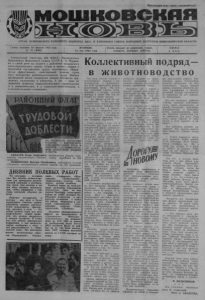 Пролетарии всех стран, соединяйтесь! ОРГАН МОШКОВСКОГО РАЙОННОГО КОМИТЕТА КПСС И РАЙОННОГО СОВЕТА НАРОДНЫХ ДЕПУТАТОВ НОВОСИБИРСКОЙ ОБЛАСТИ Газета основана 23 августа 1931 года ВТОРНИК, 1Газета выходит по вторникам, средам, \ Ц Е Н А № 59 (4869) 15 мая 1984 года. четвергам, пятницам, субботам. \ 2 КОП. Генеральный секретарь ЦК КПСС, Председатель Президиума Верховного Совета СССР К. У. Черненко в своей речи на встрече с рабочими московского металлургического завода «Серп и молот», говоря о бригадной организации труда, подчеркнул: «Выработан эффективный, свойственный нашему строю путь повышения производительности труда. Найден правильный метод соединения личных интересов труженика, коллектива и общества. А это — один из коренных вопросов социалистического строительства и в экономическом, и в социально-политическом, и в воспитательном отношении». s i M i i ЗА ОТЛИЧНОЕ КАЧЕСТВО РАБОТЫ ?. ВЫСОКОПРОИЗВОДИТЕЛЬНЫЙ ТРУД В ПЕРИОД ВЕСЕННЕ-ПОЛЕВОЙ к ам п а н и и п о дн я т В ЧЕСТЬ: БЕНДАРЯ Егора Андреевича, механизатора совхоза «Сос- новский, выполняющего сменную норму выработки на 186 процентов. МИЩЕНКОВА Виктора Михайловича, тракториста колхоза «Ленинец», выполняющего дневное задание на 170 процентов. ДНЕВНИК ПОЛЕВЫХРАБОТ / На календаре — половина мая. Все меньше остается времени для проведения весенне- полевой кампании в оптимальные сроки. Как никогда в эти дни надо спешить земледельцам, чтобы управиться с еще очень огромным объемом работы. Работать по-ударному, в полтора - два раза и более перекрывать сменные нормы, доводимые задания, круглосуточно использовать тракторные агрегаты в поле — это сейчас должно стать для всех непреложным общим правилом, это должно внедряться в каждом хозяйстве. И этому уже есть добрые примерыдля подражания, о чем свидетельствуют сообщения с мест, о чем рассказывается в «Мош- ковской нови». Так действуют многие механизаторы совхозов «Зеркальный», «Ояшинский», «Галинский», «Мош- ковский», «Томиловский», «Барлакский», колхоза «Ленинец», других хозяйств. ' В районе почти на всейшш щади проведены боронование многолетних трав, их подкормка. Прибивка влаги произведена на 22597 гектарах. Наибольшее количество в процентном отношении к плану эта работа выполнена в совхозах «Зеркальный», «Смоленский», колхозах «Союз строителей», «Ленинец». Медленно разворачиваются работы на весновспашке в «СОсновском», «Восходе», «Смоленском»,, где вспахано лишь по 100—300 га пашни из необходимых более чем по 2000 гектаров. Всего по району на 14 мая было заготовлено 1307 гектаров весенней пахоты из 12 179 гектаров по плану. Коллективный подряд— в жи в о т н о в о д с т в о Все чаще сегодня говорят о коллективном подряде в животноводстве, о преимуществах этой прогрессивной формы организации труда. На первом отделении совхоза «Смоленский» в составе третьей бригады 2 звена. Оба они работают по этому методу. — Во время одной из взаимопроверок в феврале нынешнего года зашел разговор о коллективном подряде. Слышали мы о нем и прежде. Но вопрос о внедрении его у нас не вставал. А тут подумали и решили попробовать, — вспоминает бригадир Татьяна Петровна Яцученко. Стоит сказать о том, что в последние два года на животноводческой ферме совхоза появилось немало парней и девчат. И это, конечно, сыграло свою роль, Ведь кому, как ни молодежи, прежде всего браться за новое д