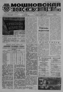 Пролетарии всех стран, соединяйтесь! Мкмошковсняя ОРГАН МОШКОВСКОГО РАЙОННОГО КОМИТЕТА КПСС и р а й о н н о г о с о в е т а н а р о д н ы х д е п у т а т о в н о в о с и б и р с к о й о б л а с т и Газета основана 23 августа 1931 года ВТОРНИК, Газета выходит по вторникам, средам, Ц Е Н А № 65 (4875) 29 мая 1984 года. четвергам, пятницам, субботам 2 КОП . ЗА ОТЛИЧНОЕ к а ч е с т в о РАБОТЫ И ВЫСОКОПРОИЗВОДИТЕЛЬНЫЙ ТРУД в ПЕРИОД ВЕСЕННЕПОЛЕ ВОИ КАМПАНИИ ПОДНЯТ В ЧЕСТЬ: РЫБАКОВА Ивана Алексеевича, СИМАЧЕВА Василия Филипповича, механизаторов колхоза «Ленинец», добившихся на севе пшеницы выполнения сменной нормы выработки на 214 процентов. КАЧЕВА Анатолия Дмитриевича, тракториста совхоза «Барлакский», занятого севом зерновых и выполняющего дневное задание на 150 и более процентов. ДМИТРИЧЕНКО Владимира Николаевича, ФЕДОТОВА Леонида Васильевича, механизаторов совхоза «Мошковский», ведущих сев пшеницы и в полтора раза перевыполняющих сменную норму. Весенняя вахта уроусая-84 ДНЕВНИКПОЛЕВЫХ РАБОТ СООБЩАЕТ ПРЕСС-ГРУППА ПРИ РАЙКОМЕ КПСС СВЕДЕНИЯ о ходе полевых работ на 28 мая 1 1рафа * хозяйство, 2 —- яровой сев (всего), 3 — в том числе зерновых, 4 — из них пшеницы, 5 — гороха 6 посадка картофеля, 7 — весновспашка, 8 — подъем пара 9 — протрав «Белоярский» «Зеркальный» «Ленинец» «Сокурский» «Мошковский» «Ояшинский» «Барлакский» «Галинский» «Смоленский» «Большевик» . «Союз строителей» «Томиловский» «Восход» «Сосновский» По району: ание семян (в процентах к плану) 51 58 23 — — . -------- 85 _ 35 34 — 100 — — 100 30 32 44 29 79 — _ 100 30 28 — 100 -------- - — 100 27 31 30 51 — 5 • _ 22 29 2 100 — 100 58 57 20 25 21 160 51 93 18 23 7 200 — 54 25 19 17 22 — . 100 29 53 65 16 20 — 67 — 100 _ 16 19 19 100 — 100 22 62 15 18 — 108 — — 100 13 16 1 - 17 — 77 17 13 6 7 2 88 — 62 1,5 20 24 10 79 37 62 30 27 Наступили долгожданные погожие дни. Это позволяет повсеместно активно вести яровой сев. На 28 мая эта работа выполнена на 12155 гектарах, что составляет 20 процентов к плану. 2 5— 27 мая земледельцы района засеяли яровыми почти 7000 гектаров. Однако ежедневная прибавка еще не достигла расчетной. СЕЙЧАС НЕОБХОДИМО ЗАСЕВАТЬ Я Р О В Ы М И КУЛЬТУРАМИ ПО 4500 — 5000 ГЕКТАРОВ ПАШНИ В ДЕНЬ. Но сказывается еще недостаточно высокий уровень организации работ. Еще даже не все сеялки в поле, не Все агрегаты технически налажены и настроены должным образом. 2 5— 27 мая неплохо потрудились механизаторы совхозов «Зеркальный», «Мошковский», «Сокурский», колхоза «Ленинец», где темпы посевной нарастают и приближаются к плановым. Медленно разворачивается сев в совхозе «Сос- новский». Снизились темпы посадки картофеля в совхозах «Смоленский» и «Барлакский». За 3 дня прибавка составила соответственно 32, 60 гектаров вместо расчетных 84, 69 гектаров. В ближайшие день-два следует заложить семенные участки овса, ячменя, пшеницы и приступить к массовому севу основной продовольственной культуры — пшеницы. НАДО ВЕСТИ СЕВ В ТЕЧЕНИЕ ВСЕГО СВЕТОВОГО ДНЯ. ПОЧВУ ГОТОВИТЬ НОЧЬЮ. ОБЯЗАТЕЛЬНЫМ ЯВЛЯЕТСЯ БОРОНОВАНИЕ ПОСЕВОВ, КОТОРОЕ ЧЕРЕЗ КАЖДЫЕ ДВА-ТРИ ДНЯ ТРЕБУЕТСЯ ПОВТОРЯТЬ. БОРОНЫ ПОСТОЯННО ДОЛЖНЫ БЫТЬ В ПОЛЕ. Наряду с зерновыми культурами в эти дни необходимо сеять кукурузу и подсолнечник. При этом следует учесть, что обязательный элемент здесь — послепосе в и о е и послевсходовое боронование. Проводить его нужно как можно чаще с целью уничтожения сорняков. На зяби началось массовое прорастание сорняков. Надо дать возможность им прорас24 мая в совхозе «