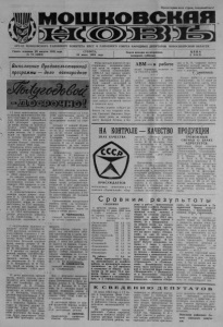 Пролетарии всех стран, соединяйтесь! ОРГАН МОШКОВСКОГО РАЙОННОГО КОМИТЕТА КПСС И РАЙОННОГО СОВЕТА НАРОДНЫХ ДЕПУТАТОВ НОВОСИБИРСКОЙ ОБЛАСТИ Газета основана 23 августа 1931 года СУББОТА, Газета выходит по вторникам, Ц Е Н А № 73 (4883) 16 июня 1984 года. четвергам, субботам 2 КОП . Выполнение Продовольственной программы — дело всенародное 11 июня животноводы нашего колхоза выполнили план первого полугодия по продаже молока государству, составивший 9400 центнеров продукции. До конца месяца на приемные пункты сверх задания будет отправлено около 2000 центнеров молока. За 5 месяцев надой на фуражную корову ’ по колхозу составил 1092 килограмма, что на 269 килограммов больше соответствующего уровня 1983 года. Подведены итоги зимнестойлового содержания скота. План продажи молока государству, доведенный на этот период, выполнен на 109,8 процента. Хорошо потрудились коллективы молочно-товарных ферм, возглавляемые В. И. Черниковой и О. Ф. Старковой, у которых этот показатель составил соответственно 121,6 и 106,9 процента. От каждой фуражной коровы за зимовку надоено 1330 килограммов молока, что составляет 102 процента к плану. Получено 83 теленка на 100 коров. В социалистическом соревновании среди доярок лидирует В. А. Санникова, которая получила от каждой из закрепленных коров за стойловый период по 1761 килограмму молока при задании 1302, а за 5 месяцев текущего года — по 1412 килограммов. Неплохих результатов добились Т. М. Кривоногова, Л. А. Кульменева, надоившие за зи- ★ С полугодовым заданием по продаже молока государству 4700 центнеров коллектив нашего совхоза справился 7 июня. Сверх плана сдадим в этом месяце более 1000 центнеров продукции. Большой трудовой вклад внесли доярки Л. М. Жунусова, Л. П. Гайдукова, Ю. И. Шеянкова, получившие за 5 месяцев от каждой фуражной коровы соответственно 1536, 1498, 1456 килограммов молока. По гурту, где скотниками В. Н. Серов’ Н. Н. Бондаренко, В. В. Глухов, надой на корову за этот период составил 1313 кило- * 13 июня коллектив третьей фермы нашего совхоза (здесь находится весь крупный рогатый скот хозяйства), где управляющим А. И. Гуськов, бригадиром животноводов, ухаживающих за дойным стадом, Л. А. Косицына, секретарем цеховой парторганизации А. М. Олешко, председателем профкома В. А. Захаров, справился с заданием первого полугодия- по продаже молока государству. Сдано 6413 центнеров продукции при плане 6400 центнеров. До конца месяца будет реализовано сверх плана 800 центнеров молока. мовку соответственно по 1553, 1500 килограммов, нынче за 5 месяцев — по 1253, 1245 килограммов молока на корову. Сегодня от каждой фуражной коровы получаем ежедневно по 11,2 килограмма молока. А по группе первотелок, за которой ухаживает Л. В. 'Гухтарова, суточный надой на корову составляет 12 килограммов. В мае от каждой из закрепленных за нею коров получено по 328 килограммов молока. Добросовестно труд я т с я скотники А. Р. Воронов и К. М. Мулин. За 5 месяцев по их гурту надой на корову составил 1162 килограмма молока, за. май — 306 килограммов. Добиться высоких результатов животноводам колхоза по- моТли успешное проведение зимовки скота, неплохая кормовая база, хорошая организация труда, добросовестное отношение к делу работников ферм, широко развернутое социалистическое соревнование. Положительно сказалась и учеба животноводов. 22 человека повысили классность. Организованно осуществлен перев