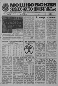 ОРГАН МОШКОВСКОГО РАЙОННОГО КОМИТЕТА КПСС И РАЙОННОГО СОВЕТА НАРОДНЫХ ДЕПУТАТОВ НОВОСИБИРСКОЙ ОБЛАСТИ Газета основана 23 августа 1931 года СУББОТА, Газета выходит по вторникам, Ц Е Н А № 88 (4898) 21 июля 1984 года. четвергам, субботам 2 КОП . ВО РАБОТЫ И ВЫСОКОПРОИЗВОДИТЕЛЬНЫЙ ТРУД В ПЕРИОД ЗАГОТОВКИ к о рмо в поднят В ЧЕСТЬ: Звена механизаторов из совхоза «Большевик», возглавляемого ГРАЖДАНКИНЫМ Николаем Кимовичем, перевыполняющего на заготовке сена сменную норму выработки в 2,5 раза. ♦ Звена кормозаготовителей из совхоза «Зеркальный», возглавляемого ШЕЯНКОВЫМ Александром Васильевичем, занятого скирдованием сена и выполняющего сменное задание на 200 и более процентов. Помогать полеводам в горячую пору заготовки кормов нам не в новинку. К тому же многие, из наших тружеников — коренные сельчане, хорошо знающие сельский труд. В поле мы всегда выезжаем с удовольствием, с бодрым настроением, шутками-прибаутками — это прибавляет задору в работе. И она у нас спорится. Вначале мы выполнили задание по прополке моркови в совхозе «Мошковский». На отведенный участок выезжали 3 раза на транспорте нашей организации, освободили от сорняков корнеплоды на гектаре. На поле никто не отлынивал от работы, трудились дружно. Особое старание показали техник Н. А. Вохми- на; кладовщик Н. А. Безбородова, кассир М. И. Мамонтова, тракторист Н. В. Войтов, мастер В. А. Гопанюк, рабочие В. П. Агафонов, А. И. Коноферчук и другие. Мы наметили также своевременно справиться с заданием и по заготовке сена. В. СМЫК, председатель профкома Мошковского ДРСУч. В помощь ★ ^с ★ Не обижен нынче дождями наш район, щедро напоена земля-кормилица. Сочные вымахали на лугах травы. Это радует земледельцев и слегка тревожит: скосить бы вовремя, заложить на хранение! Почти от зари до зари, не покладая рук, трудятся в поле механизаторы. Но объем работ большой, а рук порой не хватает. Поэтому так важна сейчас для сельчан наша помощь. Труженики нашего управления всегда с пониманием дела, охотно откликаются на нужды сельчан в жаркую пору полевых кампаний. Вот и нынче на рабочих собраниях по подразделениям управления было оперативно спланировано, в какое время и какими силами будет выполнено задание по обработке корнеплодов и заготовке сена. Фронт работ был обговорен заранее со специалистами соответствующих хозяйств. Люди вышли на работу в сельчанам поле с большим энтузиазмом, трудились так же ответственно, как на своем рабочем месте. За три дня работники Мошковского Дома быта пропололи два гектара моркови в совхозе «Мошковский». Дотошно, по-женски заботливо трудились заведующая швейным ателье Л. В. Патрашко- ва, портные В. Н. Сарычева, Л. Н. Семенова, Г. П. Копыленко, заведующая парикмахерской Г. И. Маненко и другие. В ближайшие дни работники Дома быта выполнят задание по сену. На гектаре провели обработку моркови в совхозе «Оя- шинский» работники Ояшин- ского участка нашего управления. Сейчас они заняты на заготовке зеленой массы на сено. Вывозится масса к месту хранения нашим грузовым автомобилем. В. ЛАПШИН, начальник районного производственного управления бытового обслуживания населения. ДНЕВНИК ЗАГОТОВКИ КОРМОВ С В Е Д Е Н И Я о заготовке кормов на 20 июля 1 графа — хозяйства, 2 — сено факт, (т), 3 —- в процентах к плану, 4—сенаж факт, (т), 5 — в процентах к плану, 6 — витаминно-травяная мука факт, (т), 7 — в пр