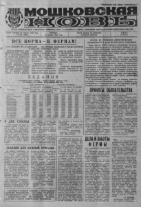 ОРГАН МОШКОВСКОГО РАЙОННОГО КОМИТЕТА КПСС и районного совета н а ро дны х депутатов новосибирской области Газета основана 23 августа 1931 года ЧЕТВЕРГ, Газета выходит по вторникам, Ц Е НА № 137 (4947) 15 ноября 1984 года. четвергам, субботам 2 КОП. Пролетарии всех стран, соединяйтесь! ВСЕ КОРМА - К ФЕРМАМ! С 11 НОЯБРЯ ПО 10 ДЕКАБРЯ — МЕСЯЧНИК ВЫВОЗКИ ГРУБЫХ КОРМОВ К МЕСТАМ ЗИМОВКИ СКОТА Советом районного агропромышленного объединения и президиумом райкома профсоюза работников сельского хозяйства в целях организованного проведения зимовки общественного животноводства с 11 ноября по 10 декабря 1984 года объявлен месячник по вывозке грубых кормов с полей к фермам. Доведены задания до совхозов и колхозов по вывозке сена в общем количестве 190 тысяч центнеров, соломы — 134 тысячи центнеров. Руководителям хозяйств, председателям профсоюзных комитетов рекомендовано разработать условия социалистического соревнования на период месячника и организовать широкую гласность хода выполнения доведенных заданий. Итоги месячника будут подведены 14 декабря 1984 года. Хозяйства, выполнившие задания месячн и к а, награждаются денежной премией. З А Д А Н И Я по вывозке сена и соломы с полей к местам зимовки скота на период с 11 ноября по 10 декабря 1984 года СЕНО (центнеров) __________СОЛОМА (центнеров) Хозяйства за месячник в том числе по декадам за месячник в том числе по декадам 11—20 ноября 21—30 ноября 1—10 декабря 11—20 ноября 21—30 ноября .1—10 декабря «Ленинец» 10000 4000 4000 2000 15000 5000 5000 5000 «Союз строителей» 20000 7000 7000 6000 10000 3000 3000 4000 ■ «Восход» 20000 7000 7000 6000 10000 3000 3000 4000 «Галинский» 20000 7000 7000 6000 10000 3000 3000 4000 • «Зеркальный» 10000 3000 3000 4000 5000 2000 2000 1000 «Томиловский» 20000 7000 7000 6000 10000 3000 3000 4000 «Барлакский» 20000 7000 7000 6000 10000 3000 3000 4000 «Смоленский» 5000 3000 2000 '■£ж у — ^ .15000 5000 5000 3000 «Большевик» 2000 2000 — — 10000 2000 4000 40U0 «Мошковский» 25000 9000 8000 8000 10000 3000 4000 3000 «Ояшинский» 20000 7000 7000 6000 10000 3000 3000 4000 «Сосновский» 6000 2000 2000 2000 5000 2000 2000 1000 «Белоярский» 2000 1000 1000 — 4000 1000 1000 2000 «Сокурский» 10000 4000 3000 3000 10000 3000 4000 3000 По району: 190000 70000 65000 55000 134000 41000 45000 48000 В ДВЕ СМЕНЫ У нас создано два звена по вывозке кормов к местам зимовки скота. В первом, которое возглавляет коммунист, секретарь партийной организации первого отделения В. И. Болтухин, восемь механизаторов. Они, работая в две смены, должны в день подвозить по 110 тонн грубых кормов. В звене — 2 К-700, ДТ-75, Т-150. На период месячника по вывозке кормов мы разработали и довели конкретные задания - для каждой бригады. Исходили из того, что за это время (с 11 ноября по 10 декабря) должны полностью вывезти с полей и доставить на животноводческие фермы все заготовленные грубые корма — 35 тысяч центнеров сена и 10 тысяч центнеров соломы. Для этой цели задействовано '13 гусеничных и 4 трактора марки К-700. Вдень намечено вывозить по 2190 центнеров кормов. . По условиям социалистического соревнования сменное задание должно выполняться каждым механизатором на 120 процентов. Трактористы, выЕжедневное задание для второго звена (С. А. Некипелов), также работающего в две смены, —60 тонн кормов. Выделены механизаторы и техника для подвоза сена и соломы в личные хозяйства рабочих совхоза. На период ударного месячника разработаны условия социалистического соревнования, определены меры морального и материального вознаграждения за добросовестный труд. везшие за месяц на тракторе К-700 8100 центнеров, ДТ-75 — 3200, ДТ-54 — 2600 центнеро