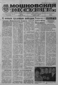 Пролетарии всех стран, соединяйтесь! ОРГАН МОШКОВСКОГО РАЙОННОГО КОМИТЕТА КПСС и районного совета народных депутатов новосибирской области Газета основана 23 августа 1931 года ЧЕТВЕРГ, I Газета выходит по вторникам, ЦЕНА № 143 (4953) 29 ноября 1984 года. четвергам, субботам 2 КОП. К новым трудовымпобедам Сессия Верховного Совета СССР Москва. (ТАСС). 27 ноября в Большом Кремлевским дворце начала работу вторая сессия Верховного Совета СССР одиннадцатого созыва. Она открылась совместным заседанием Совета Союза и Совета Национальностей. Бурными, продолжительными аплодисментами встретили депутаты и гости товарищей К. У. Черненко, Г. А. Алиева, В. И. Воротникова, М. С. Горбачева, А. А. Громыко, Д. А. Кунаева, Г. В. Романова, М. С. Соломенцева, H. А. Тихонова, В. В. Щербицкого, П, H. Демичева, В. И. Долгих, В. В. Кузнецова, Б. Н. Пономарева, В. М,- Чебрикова, Э. А. Шеварднадзе, М. В. Зи- мянина, И. В. Капитонова, К. В. Русакова, Н. И. Рыжкова. Депутаты утвердили повестку дня сессии. На обсуждение внесены вопросы о Государственном плане экономического и социального развития СССР на 1985 год и о ходе выполнения Государственного плана экономического и социального развития СССР в 1984 году; о Государственном ' бюджете СССР на 1985 год и об исполнении Государственного бюджета СССР за 1983 год; об утверждении Указов Президиума Верховного Совета СССР. С докладом по первому вопросу повестки дня выступил заместитель Председателя Совета Министров СССР, председатель Госплана. СССР депутат Н. К. Байбаков. Государственный план на 1985 год, завершающий год одиннадцатой пятилетки, сказал докладчик, основывается на решениях XXVI съезда КПСС и последующих Плену м о в ЦК КПСС, указаниях и выводах, содержащихся в выступлениях товарища К. У. Черненко по узловым вопросам развития экономики, повышения СООБЩЕНИЕ исполнительного комитета Мошковского районног^ Совета народных депутатов об итогах выборов народных заседателей Мошковского районного народного суда РСФСР В соответствии с Указом Президиума Верховного Совета РСФСР от 6 сентября 1984 года «Об очередных выборах уровня жизни народа, обеспечения надежной обороноспособности страны. Сообщив об основных ожидаемых итогах выполнения плана 1984 года, докладчик охарактеризовал задачи, темпы и пропорции экономического и социального развития СССР в 1985 году. План ориентирует на усиление интенсификации, повышение технического уровня производства, на динамичное, пропорциональное развитие экономики, максимальное использование производственного и научно-технического потенциала,' внутрихозяйственных резервов. Увеличатся абсолютные приросты национального дохода, продукции сельского хозяйства, грузооборота железнодорожного транспорта, а также производство ряда важнейших видов промышленной продукции. Намечены высокие задания по показателям эффективности общественного производства и прежде всего но росту производительности труда, использованию основных фондов и производственных' мощностей-. Национальный доход, используемый на потребление и накопление, увеличит с я на 17,5 миллиарда рублей, или на 3,5 процента. При этом почти весь прирост национального дохода направляется в фонд потребления. Прирост промышленного производства в будущем году составит 3,9 процента, в том числе по группе «Б» — 4 процента. Объем сельскохозяйственной продукции возрастет н