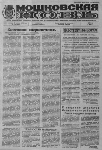 Пролетарии всех стран, соединяйтесь! ОРГАН МОШКОВСКОГО РАЙОННОГО КОМИТЕТА КПСС и районного совета народных депутатов новосибирской области Газета основана 23 августа 1931 года СУББОТА, Газета выходит по вторникам, ЦЕНА № 150 (4960) 15 декабря 1984 года. четвергам, субботам 2 КОП. Качественно совершенствовать ПРОДОЛЖАЕМ РАЗГОВОР: «КАК ПОВЫСИТЬ ЭФФЕКТИВНОСТЬ СОРЕВНОВАНИЯ» Сейчас в центре внимания профсоюзных комитетов предприятий и организаций сельского хозяйства — борьба за выполнение задач, планов и обязательств, которые определены на одиннадцатую пятилетку. Профсоюзный актив принимает непосредственн о е участие в разработке планов социально - экономичес к о г о развития трудовых коллективов, в организации социалистического соревнования. Важным показателем его качественного совершенствования является то, что индивидуальные и коллективные обязательства стали теперь более конкретными, экономически обоснованными, нацелены на повышение эффективности производства. Примером высокой организации социалистического соревнования может служить коллектив совхоза «Белоярский» (директор совхоза Н. П. Гвоздырев, председатель профсоюзного комитета М. П. Лебедева). Администрация и профсоюзный комитет особое внимание уделяют созданию необходимых условий для выполнения принят ы х обязательств коллективами ферм, цехов, отдельными работниками. Характерно, что разработка индивидуальных обязательств проходит при активном участии производственно - массовой комиссии профкома, возглавляемой Т. М. Моисеевой, цеховых комитетов, профсоюзных групп, специалистов и руководителей производственных подразделений хозяйства. Социалистические обязательства обсуждаются на собраниях в трудовых коллективах, .затем хорошо оформляются и вывешиваются на рабочих местах. Продуманы условия соревнования, которые ежегодно разрабатываются и утверждаются на совместном заседании профсоюзного комитета и администрации совхоза. Итоги соревнования среди цехов, ферм, бригад подводятся ежемесячно. Особое внимание обращается на новое, передовое, отмечаются недостатки, намечаются мероприятия по их устранению. Все это предается широкой гласности с обсуждением на собраниях результатов работы. Здесь правильно сочетают меры морального и материального поощрен и я. Вся проводимая работа по организации социалистического соревнования успешно влияет на выполнение обязательств. Коллектив совхоза ежегодно справляется с государственным планом по производству и реализации пушнины. Неоднократными победителями районного социалистичеНепривычные даже для нашей суровой сибирской зимы сильные морозы усугубили ТРУДНОСТИ зимовки крупного рогатого скота в крлхозе «Союз строителей», особенно сложно стало с водоснабжением животноводческих ферм. В эти дни в хозяйстве было сделано все для выхода из аварийной ситуации. На фермах организовано круглосуточное дежурство всех специалистов. Срочно предприняты и предпринимаются меры по отогреву системы водоснабжения ского соревнования за повышение эффективности производства и качества работы, успешное выполнение народнохозяйственного плана были трудовые коллективы совхозов «Ояшинский», «Большевик», «Зеркальный»-, колхоза «Ленинец», фермы М 2 совхоза «Мошковский», маслозавода, «Райсельхозэнерго». Совхоз «Ояшинский» з