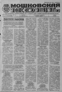Пролетарии всех стран, соединяйтесь! \Ш7, ОРГАН МОШКОВСКОГО РАЙОННОГО КОМИТЕТА КПСС и районного совета народных депутатов новосибирской области Газета основана 23 августа 1931 года СУББОТА, Газету выходит во вторникам, * Ц Е НА № 156 (4966) 29 декабря 1984 года. четвергам, субботам 2 КОП. ОБ УТВЕРЖДЕНИИ СОСТАВА ОКРУЖНЫХ ИЗБИРАТЕЛЬНЫХ КОМИССИЙ ПО ВЫБОРАМ В НОВОСИБИРСКИЙ ОБЛАСТНОЙ СОВЕТ НАРОДНЫХ ДЕПУТАТОВ ДЕВЯТНАДЦАТОГО СОЗЫВА Решение исполнительного комитета Новосибирского областного Совета народных депутатов № 1207 от 21 декабря 1984 года. На основании ст. ст. 23, 24, 26 Закона РСФСР «О выборах в местные Советы народных депутатов РСФСР» исполнительный комитет Новосибирского областного Совета народных депутатов РЕШИЛ: Утвердить окружные избирательные комиссии по выборам в Новосибирский областной Совет народных депутатов девятнадцатого созыва в составе следующих представителей общественных организаций и трудовых коллективов. МОШКОВСКИЙ РАЙОН ИЗБИРАТЕЛЬНЫЙ ОКРУГ № 302 Председатель ^комиссии — Бутусин Александр Филимонович — от партийной организации районного управления бытового обслуживания населения. Заместитёль' председателя комиссии — Миронов Владимир Николаевич — от партийной организации Мошковского райисполкома. Секретарь комиссии — Дударева Любовь Тимофеевна — от коллектива работников Мошковской школы - интерната. Члены комиссии: Зейвальд Константин Константинович— от коллектива рабочих, инженерно - технических работников и ’служащих Мошковского комбината коммуна л ь н ы х предприятий и благоустройства; Комарова Татьяна Владимировна — от коллектива работников Мошковской центральной библио т е к и ; Малышева НадежДа Александровна — от организации Всесоюзного Ленинского Коммунистического Союза Молодежи финансового отдела райисполкома; Поляков Владимир Терентьевич — от коллектива рабочих, инженерно - технических работников и служащих комбината коммуна л ь н ы х предприятий и благоустройства; Сарычева Валентина Николаевна — от коллектива рабочих, инженерно - технических работников и служащих районного производственного управления бытового обслуживания населения; Спиридонов Сергей Геннадьевич — от организации профессионального союза рабочих местной промышленности и коммунальнобытовых предприятий районного производственного управления бытового обслуживания населения. Председатель комиссии — Литовченко Григорий Петрович — от партийной организации Ояшинского ремонтно-механического завода. Заместитель председателя комиссии — Зинкевич Виктор Николаевич — от колхозников колхоза «Союз строителей». ■* Секретарь комиссии — По- лончук Надежда Федоровна— от коллектива рабочих и служащих Ояшинского лесничества. Члены комиссии: Акентьева Людмила Васильевна —от коллектива работников Ояшин- ской средней школы; Жукова Валентина Александровна — от коллектива рабочих, инженерно - технических работников и служащих Ояшинского ремонтно - механического завода; Миннахметов Факиль Вакилевич — от колхозников ИЗБИУ ТЕЛЬНЫЙ ОКРУГ № 303 колхоза «Союз строителей»; Рождественский Андрей Ре- вольтович — от коллектива рабочих,.инженерно - технических работников и служащих Ояшинского ремонтно - механического завода; Снегирева Татьяна Владимировна — от колхозников колхоза «Союз строителей»; Чистяков Валерий Анато