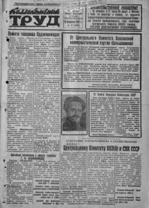 „ к о л л е к т и в н ы й т р у д о б р а щ е н и е КО ВСЕМ ПЕРЕМЕННИНАМ И НОВОБРАНЦАМ № ПОЛКА Рабоче ~ Крестьянская Красная армия 23-го фев раля празднует юбилей своего девятнадцатилетне го существования. Рожденная в огне и битвах гражданской войны, под руководством великого Сталина и железного нар кома К. Е. Ворошилова, Красная армия выросла в непобедимую армию, осна щенную лучшей военной техникой. . Сила нашей армии заклю чается в высокой сознатель ности ее бойцов и коман диров. Каждый боец знает, что он защищает счастье великого народа, счастье всего человечества. Сила нашей армии в том, что она призвана защищать мирный труд своих сограж дан. Сила нашей армии в том, что ее возглавляет боевой соратник великого Сталина, героический сын русского народа, славный полководец, первый мар шал Советского Союза К. Е. Ворошилов, чей жизнен ный путь овеян пороховым дымом легендарных и по бедоносных боев за вели кое дело рабочего класса. Не далеки те дни, когда страна получила документ истории—Сталинскую Кон ституцию. Документ, кото рый подводит итоги борь бы и достижений нашей родины,документ вдохнов ляющий; на новую борьбу и новые победы. Каждый лражданин нашей страны—активный участник социалистического строи тельства, каждый из нас воздвигал стройное и вели чественное здание социализ ма. Остался позади тяжелый путь борьбы и преодоления трудностей, Зчание со циализма построено. И вот находятся люди, которые хотят разрушить созданное, хотят наводнить нашу страну полчищами фашистских завоевателей, хотят повернуть страну во мрак и нищету, отдать наш народ под иго капита лизма. Троцкйсты Пятаков, Радек, Сокольников и дру гие, эта свора сбесивших ся псов по указке Троцко го и его хозяев—герман ских и японских фашистов, хотели превратить нас в рабов капитализма и разор вать нашу страну на клочки. Пролетарский суд воздал этой своре по заслугам— бешенные псы уничто жены, Этот процесс раскрыл карты империалистов-фаши стов готовящихся затеять мировую войну. Фашистам удалось разжечь пожар войны в Испании От руки бандитов—фашистов тонут в крови тысячи безвинных детей и женщин Испании. Они теперь тянут свои гнусные, покрытые кровью руки к нашей стране со циализма. Пусть помнят все враги— что нами кровью добытые завоевания у нас не отнять никому и никогда Мы Все как один станем на защиту родины в случае нападения на нас врага, и он будет разбить,- ибо народы страны социализма, непобедимы. Товарищи первменники и новобранцы/ В канун XIX годовщины нашей славной Рабоче-Крестьянской Крас ной армии еще больше, еще сильнее крепите свои ряды, смыкайтесь стальным кольцом вокруг Коммуни стической партии и наше го вождя товарища Сталина. Вы бойцы Рабоче-Кресть янской Красной армии— переменники и новобранцы являясь передовыми людь ми нашего села, колхоза вооруженные знаниями ве личайших людей Ленина- Сталина, под знаменем Ста линской Конституции долж ны показать образцы своей работы. Каждый переменник и новобранец должен еще больше работать над собой, должен быть хорошо гра мотным, не должно быть ни одного из вас не посе щающего школу повышен ного типа, Каждый из- вас должен стать отличным стрелком, стать „Ворошиловским стрел кон“. сдать нормы Г. Т. О и П. В. X. О Этого можно и нужно добиться,необходима толь ко настойчивая и упорная борьба за дисциплину в КБП, 100 пр