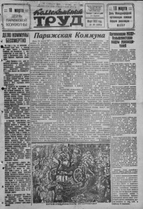 Маркса—Энгельса всем м к ним даже ю С0В0ТСШ ПАРИЖСКЩЩКОММУНАРЫ НА ь а р р и к а д а х дело КОММУНЫ с БЕССМЕРТНО Из года з год, аз поколения в 1 К0Л0Ш будет жить и никогда i t yaipiT нанять о Парижской Неимущ, ибо бессмернто и вос торжествует ю веем мире то ве яное я благородное дело, за ко тоореборолись пряжат комму- _ еары. ' «Деле Коивуны—это дело со- цялаьонй рееолюпи, дело полного 10Л1ТИЧ6СК0Г0 и экономического освобождения трудящхися, эт—о делз еоееветиого пролетариата М• этомсмысле онобессмертно* (Локка) Бессрмтеи этогоделазиждестя и фамта сущаствоаания я расвце та нашей любимой могучей социа- лмтеичесиой родины, ориближаю- щейеIл 20 -й годовщине своего сущтевосвнаи.я m С гордеотья мы яодяимаам аы- фроко над миром красное знам,я вед которым сражлаиьс на барри- жадах варижеш коммунары, знамя luieix вольностей, завоеванных рабочим наосом СтраныСоветов л союза с крестьянством вод ру- воаодетаом своей боной великой ирги Леивн—а Стаилна н запи санных золотыми буквамв! Ста ляненой Нонстнтуции. Горячей любовью окружают ра бочие I трудящиеся каотиаилсти- '*» чвеких старн Советский Союз— евеа ооциадястнческоа отчество, мою опору с борьба против иани- талимв, против войны и фашизма. В бешеной алоба мечутся сто рожима осы иаоитмамал—гер манскиефашистиыяпонский им мриавяеты, аыисшая извергов рода чашаисжо, которые бы ваялись, аодебно палачам Париж ской Коммуны Тьеру и Гавифэп,а шить в вроем рабочих и крестьян Страны Советов великов дело со циалзми.а И зту ерэзренную роль вился вышимть Иуда- Троцкий вместесо ососй бандой из трв-ц ■ иетиео-аииовьевских негодяев ори водвржии изменииков редины по добных Бухарину и Рыкову. Первые отярды этих равзодчиков германскоог и япон скгоо фашизма уничтожены, отерты е лиац земли по приговору Верхое- мго Суда, яо приговору нашего маагсиого народа. ^ Л этотнригоеор—„емерть ара там народа!" -слышится каждый день а врмзыеах к классовой бдн- W шьности- Его нельзя нс заме тить также а дедаха морах и песнях иаших людей, 1еззаа1Тио оюдящех своюсо циалистическуюроцивуио.гдающихей вессвоисилы. Он, этотприговорвра гам, видан в готовности нашего наордаброситься многомиллионной ммной на вргаа о первому зову С nu ll партии, своего веянного вож- J> да товарища Оталина, асан только враг восмаиг стпуить ногой на со- мтсиую аамлю- Могуч I мвоырушнм наш Вали- м 1 воиатмий fjMil ieccMpi TOH в Й1яоб1димо дало Парижо.кй Коммуны—дала Маркоа - Зигель <1 М -ЛИЯМ • СТ 1 Ш 1 - А И 8 ИМ !* ■ми Парижская Коммуна День 18 марта‘1871 года|нуга расправу. Коммуна неI—Ленина — Сталина 'на вошел в историю между- сумела распространить языках и наречиях всего народного революционного свои идеи на всю страну мира, обращаясь к миллио- движения, как день первой героической попытки про летариата свергнуть , гос подство буржуазии ивзять власть в свои руки. В этот день, шестьдесят шесть лет назад, впервые в истории человечества квласти при шел рабочий класс, и крас ное знамя стало госудрст- ненным знаменем Парижа. Парижская коммуна оставила неизгладимый след в истории международного резолюшЛтшого пролетар ского движения. Она про возгласила восьмичасовой рабочий день и отменила штрафы на предприятиях. Она заменила постоянную армию вооруженным наро дом и реквизировала (ото брала) квартиры буржуа зии для рабочих Она уста новила сменяемость чинов ников по требованию трудя щихся 