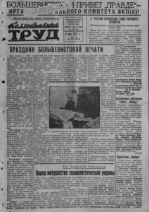 'ч: 4 r p / ^ t п-п газе» г-яцл- 11 д . А Л 1 ПРИВЕТ „ПРАВДЕ*- АлЬНОГО КОМИТЕТА ВКП(6) ! Пролетарии всех стран, соединяйтесьI ■ fCoJJeAhtidMm Т Р У Д Орган Карасукского Райкома ВКП(б) и Райисполкома Зап.-Сиб. края Выходит 1 pas в 5 дней Ст. Карасук 5мая 1937 г, СРЕДА № 24(501) ОТРЕТЬЕМ ПЯТИЛЕТИЕМ ПЛАНЕ НАРОДНОГО ХОЗЯЙСТВА Постановление Совета Народных Комиссаров Союза ССР Ввиду того, что второй пятилетний план по важ нейшим отраслям народно го хозяйства выполнен досрочно, а именно, по промышленности СССР в целом выполнен к ! апреля ПРАЗДНИК БОЛЬШЕВИСТСКОЙ ПЕЧАТИ День печати в 1937 г. совпадает с двадцатипяти летием «Правды», централь ного органа ВКП(б). Юби лей „Правды" является праздником всей больше вистской печати, всех тру дящихся. „Правда* начала выхо дить, когда в России после нескольких лет мрачной политической реакции на чался новый революцион ный под'ем масс. Уже во второй половине 1910 года оживилось р а б о ч е е движение. На расстрел рабочих на Ленских золо тых приисках в апреле 1912 года рабочие многих горо дов ответили стачками. Ре волюционное настроение масс перешло в револю ционный под'ем. Он был подготовлен и возглавлял ся партией большевиков. Большевики, под руко водством Ленина и Стали на, вели героическую борь бу за укрепление нелегаль ных (подпольных) органи заций партии и вовлече ние в революционное дви жение широких масс рабо чего класса,—борьбу за подготовку новой револю ции. При помощи печати пар тия, загнанная в подполье, расширяла работу своих нелегальных организаций. При помощи газеты партия вела революционную агита цию и пропаганду, органи зовывала массы вокруг свое го революционного знаме ни. Такой замечательной большевистской газетой была .Правда". Создателя ми и организаторами .Прав ды" были Ленин и Сталин. Большевики, возглавляе мые Лениным и Сталиным, вели героическую борьбу за партию. „В центре этой борьбы за партийность, за создание массовой рабочей партии стояла «Правда». Она была не просто газе той, подводящей итог успе хам большевиков в деле завоевания легальных рабо чих организаций,—она бы ла вместе с тем организую щим центром, сплачиваю щим эти организации вок руг подпольных очагов партии и направляющим рабочее движение к одной определенной цели* (Ста лин, К десятилетию „Прав ды*). / „Правда* с первых же дней своего существования стала любимой газетой ра бочих. Созданная на их средства, она существовала при их поддержке. „...Соз дание «Правды».—говорил Ленин,—остается выдаю щимся доказательством соз нательности. энер 1 ии и сплоченности русских ра бочих* (Ленин, т. XVI стр. 45). Царское правительство преследовало „Правду*, Ее закрывала полииия. За два года своего существования „Правда* bo - ^ w w ^ семь раз меня ла названия. Каждый раз после закрытия газета продол жала выходить под новым за головком. Так было и после Февральской р революции, ког ца „Правда" бы ла мощным гла шатаем партии в ее борьбе за победу социа диетической ре волюции. Бур жуазия и ее прихвостни— эсеры и мень шевики боя лись больше вистского голо ее-—в связи с массами, в I „Правды* от наших дней, опоре на массы. С первого партия, органом которой же дня „Правда" стала явтяется „Правда*, прош- широко вовлекать в свою деятельность- рабочих. Ве лика историческая заслуга „Правды* в создании раб селькоровского движения в нашей стране. Ленинско- сталинская „Правда"—луч ши