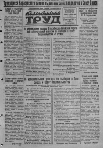л и i l '* Равл- п-д газет и издательств (1 э к з ) : т т ТиишкиДараелиагвраивдпвыдяигтяигапхнаидадашвЕтетВова каждый е радостью ГОТОВ ОТДАТЬ свой голос вождю На состоявшемся 25-го октября общем собрании рабочих, служащих и спе циалистов совхоза № 270, где речь шла о кандида тах в депутаты Совета Союза, первым взял слово тракторист—комбайнер то варищ Усояьцев. Тов. Усольцев заявил: „я думаю, что не ошибусь товарищи, если скажу, что каждый из нас прежде всего и с великой ра достью готов отдать свой голос тому, кто дал нам счастливую и радостную жизнь, кто ведет нашу со циалистическую родину от победы к победе". Оратор не успел еще назвать имя товарища Сталина, как собрание бурными, долго не смолкающими аплоди сментами ярко продемон стрировало свою безгра ничную любовь, свое дове рие и свою преданность ве ликому вождю, учителю и другу товарищу Сталину. Всеми выступавшими ораторами собрание в це лом в принятой резолюции единогласно выражено же лание, * чтобы товарищ Сталин дал свое согласие баллотироваться в Сдавго родском избирательном округе. Федотов, Гринева, Ахм е тов, Киселев, А. К ул а ги на Пролетарии всех стран, соединяйтесь1 v m . Орган Карасукского Райкома ВКП(б) и Райисполкома Алтайского края Выходит 1 в 6 днвй Ст. Карзсук 27 октября 1937 г, С Р Е Д А М 5 6 ( 5 3 3 ) 01 отверждаем состава Нгвосибирско-Ддтс1№ окруж ной избирательной комиссии по выборам в Совет Национальностей от РСФСР Постановление Всероссийского Центрального Исполнительного Комитета Президиум Всероссийского Цен-4 трального Исполнительного Комитета постановляет; Утвердить Новосибирско-Алтайскую избирательную комиссию по выборам в Совет Национальностей в следующем составе: Председатель Окружной избиратель Ной комиссии У ж е в Па> ел Фздорови .ч от Новосибирского областного коми тета профсоюза работников политико просветительных учреждений. Заместитель председателя Окруж ной избирательной комиссии Кузнецов Петр Дм и триеви ч —от рабочих и служа щих завода № 153. Секретарь Окружной избирательной комиссии Пзлеитьав Сергей Семенг в и ч - от Центрального Комитета профессио нального союза угольщиков Востока. Члены Окружной избирательной комиссии: Сидоров Алексей Степанович — от рабочих и служащих завода № 179; Медведева Мария Тихоновна— от ра бочих и служащих трикотажной фаб рики им.‘Ваковского г. Новосибирска; Карасев К о нс тан ти н Гри го р ье в и ч— от Сталин— знамя великих завоеваний и грядущих побед С большим под'емом прошло собрание коллек тива рабочих, служащих и специалистов Хорошенской МТС, посвященное пред стоящим выборам в Вер ховный Совет СССР, коммунистической организации г. Ново сибирска; Тимофеев Семен Андреевич-— от Ново сибирского областного комитета про фессионального союза работников на чальных и средних школ; Романов Михаил Гри горьевич— от Барнаульской коммунистической ор ганизации; Зеленина Ольга Степановна— от ра бочих и служащих Барнаульского текстильного комбината. Садыков Сабир Сады кович —от рабо чих и служащих Барнаульского вагоно ремонтного завода;. Дми триева Валентина Ф едоровна —от Барнаульской организации Всесоюзного Ленинского Коммунистического Союза Молодежи. Председатель В се российско го Централь ного Исполнительного Коми те та М. КАЛИНИН За секретаря Всероссийско го Ц ентраль ного И сполнительного Ком и те та А. АРТЮХИНА Мо