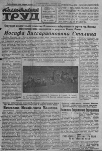 ЦмМ Н. Сибнрск .Дом советов „стР&н*сседа { ад., п.д газет ииздательств (1 экз) РЕГИСТРАЦИЯ РУКОВОДИТЕЛЕЙ Т Р У Д гаицима, . ___ i _ 4 и Райисполкома Алтайского края Выходит 1 раз в 6 дней Ст. Караеук 1 1ГЛ РТИИ И ПРАВИТЕЛЬСТВА КАНДИ ДАТАМИ ВДЕПУТАТЫ ВЕРХОВНОГО СОВЕТА ВЫЗВАЛА НОВЫЙ ПОДЪЕМ ПОЛИТИЧЕСКОЙ АКТИВНОСТИ ТРУ ДЯЩИХСЯ МАСС НАШЕЙ СОЦИА- 23ноября1937г. ВТОРНИК ^ № 61 (538) J ЛИСТИЧЕСКОЙ^РОДИНЫ.' Окружная избирательная комиссия Сталинского избирательного онруга гор. Москвы I зарегистрировала кандидатом в депутаты Совета Союза Иосифа Виссарионовича Сталина ечером 10 ноября со- Ч увство величайшей ПЯ- ! НЯ П О 7Т И я/гнпята т т а »* I р л т г л о х г й т л n n п л гч п т . . . . I В стоялось заседание окруж ной избирательной комис син Сталинского избира тельного округа гор. Моек вы по выборам в Совет Союза. На заседании при сутствовали представители трудящихся Сталинского избирательного округа. На повестке дня стоял один вопрос — о регистрации кандидатов в депутаты Со вета Союза. Первое слово получил • рабочий завода им. Фрунзе тов. Сомов. увство ра дости и гордости охватило всех трудящихся нашего] округа, когда мы сегодня! узнали о том, что наш кандидат, великий и люби мый товарищ Сталин дал согласие баллотироваться по Сталинскому избира тельному округу г. Моск вы. Вместе с нами сегодня радуется вся наша страна, весь наш многомиллион ный, героический совет ский народ, Избирателям нашего округа, носящего имя товарища Сталина, оказана величайшая честь. Переживая радостное вол нение, мы думаем о мил лионах трудящихся нашей страны, также единодушно выдвинувших своим пер вым кандидатом товарища Сталина. И нам хочется сказать им: идя 12 декабря на выборы с именем това рища Сталина в сердцах, голосуйте за вервых сы нов и дочерей нашей ро - , дины, за лучших людей, преданных ленинско-ста линскому Центральному Комитету, голосуйте за сталинских кандидатов. (Аплодисменты). Вручаю вам, тов. Вино градов, как председателю окружной избирательной комиссии, протоколы соб раний коллективов десяти заводов и фабрик нашего — От имени рабочих, служаших и инженерно- технических работников завода им. Фрунзе, электро завода им. Куйбышева, прожекторного завода име ни Л. М. Кагановича, заво да опытных конструкций фабрики им. Балакирева, первыми в Союзе выдви нувших кандидатом в де путаты Совета Союза вож дя народов товарища Ста- >»линв, —сказан под бурные аплодисменты тов. Сомов, —а также от имени всех трудящихся нашего изби рательного округа, едино душно поддержавших это предложение, прошу ок ружную избирательную ко миссию принять документы для регистрации первого кандидате в Верховный Со вет СССР—отца и друга тру дящихся всего мира Иосифа Виссарионовича Сталина. ПРАЗДНОВАНИЕ 20-й ГОДОВЩИНЫ ВЕЛИКОЙ ОКТЯБРЬСКОЙ СОЦИАЛИСТИЧЕСКОЙ РЕВОЛЮЦИИ (Слева направо) товарищи Д \ Димитров, Н. Хрущев, И. Сталин, К. Ворошилов, В. Молотов и Д, Ежов на трибуне мавзолея привет ствуют демонстрантов. округа, выдвинувших кан дидатуру товарища Стали на в Совет Союза Верхов ного Совета СССР. Все присутствующие в зале встают. Долго гремит восторженная овация в честь товарища Сталина. Взволнованные речи про износят работница электро завода им. Куйбышева тов. Славнова, Герой Со ветского Союза тов. М. М, Громов, рабочий завода „Мостяжарт“ тов. Басов. Секретарь окружной из бирательной комиссии тов. Карасев зачитывает 