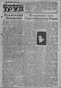 Пролетариимех стран, coedi « и » Т Р У Д н. С й й р с . K V J Z T o $ -д газет-я йзда края Выходит 1разв6дней Ст. Карасук 1декабря1937г. СРЕДА Ч* 63 (540JJ пять о пролетарском вожде, пламенном трибуне— С. М. Кирове будет вечно жить в сердца* трудящиеся и всегда призывать к революционной бдительности, к неустан ной борьбе с врагами родины, за д е ло ^коммунизма. J Пламенный большевик У\ с „Все то, что путается под ногами, что колеблет ся и сомневается, должно Сыть оставлено в истори ческой пропасти, а нам с вами дорога только вперед и только к победам!* Эти пламенные слова, обращенные Сергеем Ми роновичем Кировым к де легатам XV с'езда партии, были грозным предостере жением врагам советского народа. Враги боялись и ненавидели Кирова. И это не случайно, ибо Киров ) был непреклонным сталин цем. Раскрывая подше за мыслы троцкистТко-зиновь- евской банды предателей, Киров требовал решитель ной расправы с ними. „„.Оппозицию нужно от сечь самым решительным, самым твердым и самым беспощадным образом. Этого ждет наша партия, этого ждет от нас рабо чий класс, этого, товари щи, ждет от нас и между народный пролетариат1*. Народ горячо любил Ки рова-—бесстрашного борца за дело Ленина—Сталина. Рабочие и колхозники ви дели в Кирове твердо-ка менного большевика, кото рый всегда раскрывал коз ни врагов и наносил им сокрушительные удары. Киров, верный сын наро да, один из лучших спод вижников Ленина-Стали на, пал от руки подлых, гнусных убийц из троц- кистско-зиновьевской бан ды шпионов фашистской разведки. „От руки врага,—сказано в письме членов ЦК ВКП(б) по поводу смерти Кирова,— погиб человек, который всю свою яркую жизнь от дал делу рабочего класса, делу коммунизма, делу ос вобождения человечества1. В Казани и Томске, во Владикавказе и Баку, на фронтах гражданской вой ны и в борьбе с маскирую щимися изменниками и предателями—троцкистами, зиновьевцами, бухзринцами и другими фашистскими бандитами, в глухом цар ском подполье и на руко водящих постах партии и советского государства— везде Сергей Миронович заражал массы энтузиэз мом, энергией, верой в ра бочий класс, преданностью делу социализма. Громя беспощадно вра- | ского плана индустриали зации страны к коллекти визации сельского хозяй ства. Он с замечательной заботой, истинно сталин ской заботой, выращивал ростки новой, радостной, счастливой жизни, ростки нового социалистического общества. Это общество теперь создано. Великие победы социализма, зале чатленные в Сталинской Конституции, достигнуты нелегко, достигнуты' в большой, напряженной ра боте, в острой борьбе. Социализм в нашей стра не победил бесповоротно. Народы СССР гранитной стеной стоят на страже социалистического строя. Заклятые враги социализ ма—троцкисты, бухаринцы рыковцы—замышлчли вос становить власть помещи ков и капиталистов. Троц- кистско-зиновьевско-буха - ринские шнионы замышля ли вернуть фабрики и за воды буржуазии, а земли —помещикам. Они хотели ввергнуть наш народ в нищету и в кабалу. Замыс лы бандитов разоблачал товарищ Сталин и его вррные соратники. Троцкисты и бухаринцы стали на путь террора. Они подготовляли покуше ния на жизнь руководите лей большевистской пар тии и советского прави тельства. Жертвой этих подлых замыслов пал Ки ров. Враги рассчитывали, что тяжелое несчастье, по стигшее нашу партию, рас строит ряды борцов за со циализм. Банди