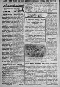 Хлеб-это тоже оружие,обеспечивающее победу над врагом Пролетарии т ех стран, соединяйтесь'. <Са ггсяАшШн? Новосибирск, обком партии сектор печати (I ьЩ :ого% 6) Г Орган Карасукек , Райкома ВКИ(б и Районного Совета депутатов трудящихся Боаоеабирской области Выходит 1 раз внедели цена номера 15 коп. 16 севтября 1944 г, Суббота 33 ( 878 ) 4 ~"Х1- ХЛЕБ НУЖЕН СТРАНЕ И КРАСНОЙ АРМИИ ТАКЖЕ, КАК ПУШКИ, ТАНКИ, САМОЛЕТЫ. ЧЕМ БОЛЬШЕ ХЛЕБА ДАДИМ СТРАНЕ, ТЕМ КРЕПЧЕ БУДЕТ НАШ ТЫЛ, А СТАЛО БЫТЬ И СИЛА НАШИХ УДАРОВ ПО ВРАГУ ФОРСИРОВАТЬ ХЛЕБОПОСТАВКИ е *' В центре всех хозяйетвен- вых и политических работ в настоящее время стоит воорос хлебопоставок. Досрочно рас считаться с государством— это значит выиграть сражение в борьбе с врагом. Помня, что первевшев заповедью колхозов является выполнение плана хлебопоставок, большинство руководителей колхозов и бри гадиров транспортных бригад по-большевистски используют ва вывозке зерна государству абсолютно все тягло, включая и воров колхозников. Первенство по сдаче хлеба государству на сегодняшний день держит колхоз им. Пет ровского, где председателем колхоза тов. Кривошеев. Пе ревыполняя пятидневные гра фики, колхоз добился выпол нения плана хлебосдачи на 55 проц. В первых рядах сдат чиков хлеба государству стоят также колхозы «Новая семья» (председатель колхоза тов. Реуцкий), «Красный выселок» (председатель тов. Червиченко), «Вперед к коммунизму»— Ан дриевский. Иначе обстоит дело с выпол нением плана хлебопоставок в сельхозартели «Победа», На- лецкого сельсовета, где пред седателем колхоза тов. Мащея- во. Потеряв всякое чувство партийного долга, тов. Мащен- ко стал на путь антигосудар ственной практики, преступно срывая выполнение поставов хлеба государству. Разве нель зя было колхозу «Победа» при мобилизации Есех внут ренних ресурсов колхоза, вплоть до применения тележек в воров колхозников ва сегод няшний день вывезти хлеба на элеватор не 2 ,6 проц. к плану, а быть в числе передо виков и закончить расчет с государством к 15 октября? Все возможности для этого в волхозе имеются. Но тов. Ма- щевко ве торопится и за пер вую декаду сентября вывез только И центнеров зерна Позорно отстают в выполне паи плава хлебопоставок t колхозы: им. чЖданова (пред седатель колхоза тов. Ломи- ковский), выполнивший план всего лишь на 4,5 проц., «Красный колос» (тов Ша- еаурив)— 6,4 проц., «Работ ник»—тов Яячарив— 7,8 проц. Председатели этих колхозов еще до сих пор не поняла той огромной важности досроч ного выполнения плана хле бопоставок на 4 году решаю щей битвы с врагом. Они привыкли хныкать и ссыла ться на всевозможные причи ны. Ни чем другим, как потерей чувства долга перед Родиной нельзя об'яснить медлительность в вывозке зер на на государственные заго товительные пункты. Коммунисты и комсомольцы судьбу хлебопоставок должны взять в свои надежные руки и оказать большевистскую помощь председателям колхо зов, советов и директорам МТС и совхозов в деле форси рования вывозки зерна, мо билизуя на это всех колхоз ников, перенять замечательную инициативу комсомольцев кол хоза «Новая семья», об'явив- ших консомельскс-мелодежную декаду, в запять авангардное место в борьбе за выподнеяие фронтовых заданий Обкома пар тии и Облисполкома к 25 сен тября. Публикуемое в сегодняш нем номере постановление бюро Райкома комсомола, одобряю щее инициативу комсо