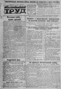 Новосибирск, обком партии-лектор . / i Л ter* \ ■S Т> Тяжеловесные красные обозыдвинем на элеватор в честь Октября Пролетарии в с е * стран, соединяйтесь ] ^СЬм а&мШ гй Г * . Орган Карасукеког,\ Райкома В К П (б ) ’ и Районного С о ве та депутатов т р у д я щ и х с я Новосибирской области выходит 1 раз в неделю цена номера 15 ыщ. )2 октября 1944 г Четверг я 38 873 1 к ей О В. Председателю колхоза „Вперед к коммунизму * товарищу АНДРИЕВСКОМУ Секретарю комсомольской организации товарищ ВОРОНЕЖСКОЙ Райком ВКП(б) поздравляют Вас с одержанной крупной победой в завоевании высокого сталинского военного урожая, 'обеспечивающего выполнение плана хлебопоставок государству 'в количестве 20598 пудов что составляет 111,6 проц. . J Передайте благодарность Райкома ВКП(б) колхозникам и колхозни цам юношам и девушкам, самоотверженно трудящимся над успешным решением этой важнейшей военно-политической задачи. Райком ВКП(б) ходотайствует перед Обкомом партии о занесении Вас в почетный список для подписания первыми отчета тов. Сталину о выполнении обязательств, взятых трудящимися Новосибирской области в первомайском рапорте. Сещ етарь Райкома вКП(б) Д„ ПОЛЯНСКИЙ Больше зяби выше урожаи I Борьба за получение высокого урожая, который мы сейчас уби раем, началась еще в прошлом году осенью с посева озимых и вспашки клина под зябь. Все, ко нечно, желают получить обиль ный урожай и в будущем году, tto благих пожеланий не доста точно. Чтобы основательно на~ деяться на получение хорошего урожая в будущем, нужно зало жить ему прочную основу, то- есть, на ряду с посевом озимых полностью выполнить план зяб левой пахоты. Именно так и поступают кол хозники сельскохозяйственной артели „Коминтерн", Черно-Курь- инского сельсовета. Не отклады вая зябь на послеуборочный пе риод, а правильно сочетая ее с хлебопоставками, они вспахали уже 267 гектаров, что составляет сравнительно большую половину тан а . 240 гектаров под зябь вспа хал колхоз „Вперед к коммуниз му", на 50 процентов выполнил план подъема зяби колхоз „Ис- кра Ильича", нисколько не осла бив темпы хлебосдачи. По иному относится к подъему зябн председатель колхоза „17-ый партсъезд" тов. Перелетов. На се годняшний день ко 1 хоз вспахал под зябь всего 3 гектара на ряду с позорным отставанием в хлебо сдаче. i. Колхозы „Пламя" (председатель тов. Кузьменко) „Новый труд" (Ровный) и „Победа", Чуманского сельсовета (председатель колхоза тов. Суслов) взмету- зяби совер шенно не уделяют никакого внимания и до сих пор не про ложили ни одной борозды. В целом по району план подъ ема зяби выполнен всего лишь на 12 процентов, что в площади составляет 3735 гектаров, а при рост за пятидневку выражается в 663 гектарах. 34 колхоза района ззг истекшую пятидневку взметом зяби совершенно не занимались. Однако такое положение дел ни в коей мере не тревожит ни пар тийную организацию, ни земель- Колхозники и колхозницы 8 Работники МТС и совхозов ! ВстпуайтеЩ тшшшштшт ных работников района. Одной из причин низких темпов подъема зяби является неисполь зование тракторного парка и не- проявление со стороны директо ров МТС беспокойства об урожае будущее о года, .продолжающих оставаться в стороне от этого важнейшего мероприятия, способ ствующего повышению урожай ности. Нужно в самый кратчайший срок сделать коренной перелом в заготовке земель под несений посев буду пего года. Сочетая 