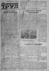 йрслетариа есёх стран, соединяйтесь'. т& j€ b jje rih eu tod i& г * и Районного Совета депутатов трудящихся Новосибирской облаоти Зыщнт 1раз з неделю цена номера 15 «он 17 декабря 1944 г, Воскресенье j4$ 47 Орган Карасукс’кого* И 21 декабря великому вождю товари- р комавкщб) ^ Щу Сталину исполнится 65 лет. Отме тим этот знаменательный день новым г напряжением наших усилий для помо щи фронту, для процветания нашей горячо любимой Родины. т т Боевые задачи райоонйнпарторганизации На-днях закончил свою работу VIII очередной пленум Карасук- ского Райкома ВКП(б). Пленум обсудил три основных вопроса: о мерах по спасению скота от гибели, об улучшении .учебно- воспитательном работы 8 школах к о работе колхозных партийных организаций. Обсуждая первый вопрос, пле нум в своем решении отметил крайне тревожную обстановку в П»Йоне, заключающуюся в том, что *з-за необеспеченности скота кор мами преобладающей частью кол хозов, создалась угроза гибели нота от бескормицы в период зимовки. Считая создавшееся поло жение с кормами катает! о ричес- ким, пленум обратил самое серь езное внимание и потребовал от всех руководителей колхозов и совхозов, партийных организаций, чтобы они в ближайшие дни раз рядили создавшуюся обстановку с кормами. Неотложный долг руко водителей колхозов, директоров совхозов,—немедля вводного дня принять крутые меры у деледо- цолнителытого нзыекзния кормов за счет подборки незаскирдованной соломы, заготовки полыни для овец и бережного расходования кормов. v с. Наряду с этим, пленум оказал партийные организации повсе дневно осуществлять контроль за правильностью расходования кор мов, добиваясь расходования пх строго по весу в соответствии с кормовым планом, ведя решитель ную борьбу с фактами растран жиривания кормов. Пленум счи тает главной задвчей всей район ной I яртйиой организации—это повседневное руководство обще ственным животноводством, чтобы партийные организации наряду со всей своей работой главное внима ние обращали бы спасению жи вотноводства, привлекая для этого всех Атециалистов сельского хо зяйства, всю общественность. Обсуждая вопрос об улучшении учебно-воспитательной работы в школах, пленум признал, что на ряду с незначительным числом шкод района, добившихся серьез ных успехов в деле улучшения учебно-воспитательной работы, большинство школ района в этом направлении продолжают иметь явно неудовлетворительные пока затели, в силу чего почти две трети учащихся имеют плохую успеваемость. Плепум с особой остротой от метил крайне плохую учебпо-вос- питательную работу в Палецкой, Рассказовской и Карасартовской неполно-средних и Черно-Курьин- ской средней школах.Результатом такого положения в этих и ряде других школах явилось то, что отдел Народного образования пло хо занимается руководством шко лами в районе, а Райком комсо мола совершенно оторвался от школ, не оказывает ям вадлежа- щей помощи. Работники райОНО вместо жи вого оперативного руководства школами, продолжают ^отсижи ваться в канцелярии, ие бывая непосредственно на местах. Пленум со всей остротой под-, верг критике негодный стиль руководства школами со ^стороны сельских советов и партийных оргажпацин, указав на Г го, что они оторвались от школ, не живут их нуждами. ЧобЫ внести коренное изменение п | работу школ, повысить уровень учебно- воспитательной работы, пар