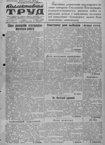 вслскся&наы оиёмисх?п&*С{ ж Пролетарии всех стран, соеданляйтесь\ jCbuue/cmu&mii Орган Карасунекого райкома ВКП(б) а районного Совета депутатов трудящихся. Новосибирской области. М 2 {1427} СРЕДА, 3 ЯНВАРЯ 1931 ГОДА Цена номера 13 копеек Неустанно разъяснять трудящимся - ликие принципы Сталинской Конституции, всемирно-историческое значение побед социализма, успехи в выполнении послевоенной пятилетки—благородная задача большевистских агитаторов. Шире развернём агитациономасовуюработу Подведённые итоги выборов в местные Советы депутатов трудящихся говорят о возросшей политической активности масс, об укреплении морально-политического единства советского общества, об укреплении дружбы народов нашей страны, о торжестве Сталинской внутренней и внешней политики. Наш народ ещё раз продемонстрировал перед всем миром свою сплочённость в борьбе за мир. Выборы показали нерушимость сталинского блока коммунистов и беспартийных. В ходе подготовки и проведения выборов агитколлективы провели большую работу на десятидворках, агитпунктах и избирательных участках. Хорошо работали агитпункты Совхозный (заведующая тов. Пенькова), Центральный (заведующий тов. Марусин), Сгу- дёновский (заведующий тов. Хилько) и другие. Эти агитпункты были красочно оформлены; в них проводились беседы, лекции и доклады, семинары агитаторов, читки газет, художественной литературы и т. д. Агитпункты явились центром массово политической работы. Агитколлективы Троицкий (руководитель тов. Фурсенко), Нестеровский(руководитель тов. Бондаревский), Хоро- шинской МТС (руководитель тов. Зеленков) и другие провели значительную работу на десятидворках. 18 февраля 1951 г о д а - день выборов в Верховный Совет РСФСР. Перед агитколлективами и агитпунктами стоит задача—шире развернуть агитационно- массовую работу среди населения, используя накопленный опыт. Руководители агитколлективов должны повседневно контролировать работу агитаторов: проводить с ними семинары, организуя на них лекции, доклады, инструктажи, обмен опытом работы. Чаще бывать на десятидворках вместе с агитаторами, помогая им лучше организовать про ведение бесед; организовать на каждой десятидворке уголок избирателя. Беседы и доклады должны быть тесно связаны с жизнью и практикой. Агитационно- пропагандистскую работу необходимо увязывать с фактами всемирно- исторических побед социализма в нашей стране, морально политического единства советского общества и дружбы народов Советского Союза. Всё это наиболее доходчиво и убедительно можно популяризировать на местных примерах хозяйственного и культурного строительства. Центром агитационно-массовой работы должен стать агитпункт. В агитпункте надо иметь достаточное количество газет и художественной литературы. Агитпункты так же, как и общественные организации, должны быть оформлены наглядной агитацией, призывающей к новым производственным успехам в честь выборов в Верховный Совет РСФСР. На службу избирательной кампании надо поставить все испытанные формы агитации —лекции, доклады, беседы, радио, кино, все культурно- просветительные учреждения. Партийные органы должны изо дня в день следить за тем, на сколько полно и умело всё это используется и отвечает интересам избирателей. Партийные организации должны добиваться того, чтобы ни один избиратель не остался 