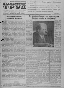 Пролетарии всех стран, соединяйтесь! Kbuue& tui& isui Орган Нарасунсного райнома ВНП(б) и районного Совета депутатов трудящихся, Новосибирсной области. М 7 (1432) ВОСКРЕСЕНЬЕ, 21 ЯНВАРЯ 1951 ГОДА Цена номера 15 копеек Бессмертное дело Ленина живет и будет жить в веках. Великим счастьем для нашей страны и для всего передового человечества явилось то, что дело Ленина продолжил и продолжает его верный ученик, друг и соратник товарищ Сталин. («Правда»). Сохранению скота— основное внимание как с коза* Наше социалистическое сель- ^ ^ о е хозяйство вступило в за- ^ ^Р>|иающ1!Й год выполнения И трёхлетнего плана развития общественного продуктивного животноводства, К колхозах и совхозах за два предшествовавших года значительно увеличилось поголовье скота и птицы. Сохранение этого скота и дальнейший рост общественного животноводства является самой важной задачей, стоящей перед колхозами и совхозами в настоящее время. Решение этой задачи находится в прямой зависимости от того, будет проведена зимовка та, как будут преодолены труднения с кормами. Укрупнение колхозов оказывает благотворное влияние на j^p inH oe развитие обществене н ) продуктивного животноводства. Пришедшие к руководству артелями новые товарищи из числа районного актива специалистов сельского хозяйства сразулачали свою работу с вопросов по обеспечению кормами общественного скота и улучшению его содержания. И колхозе имени Тельмана (председатель тов. Крупа) в коровнике настланы полы, проведены мероприятия по благоустройству и утеплению животноводческих помещений; на строгой учёт взяты все имеющиеся в хозяйстве кормозапасы, вывозка их с урочищ производится под контролем объездчиков и фуражиров, корма выдаются на фермы но весу. В колхозах «Красноезнамя», имени Тельмана, «Вперёд к коммунизму», «Маяк Ильича», имени Андреева и ряде других стало правилом сдабривание кормов солью, организован завоз в хозяйства мела. При наличии положительных явлений, которые имеют место в большинстве укрупнённых колхозов , в общем по району кормов заготовлено не достаточно. В ряде случаев положс- нпе обострено безответственностью бывших руководителей мелких колхозов, которые в ожидании слияния артелей пустили дело расходования кормов на самотёк, а в некоторых случаях шли на прямое преступление — разбазаривание кормов. Так, например, в бывшем колхозе «Опора» только в течение декабря израсходовано не по назначению около 800 центнеров сена, тем самым сокращены общественные -V-: кормозапасы более чем на месяц. Ещё более угрожающее положение в сельхозартели имени Молотова (председатель тов. Теличко). В этом колхозе было недостаточно заготовлено кормов для общественного скота. В декабре допущен перерасход — разбазарено 200 центнеров сена. Таким образом, в сельхозартели скот будет обеспечен кормами только до 5 февраля. Оставшееся незаскирдованное сено до сих пор не прибрано. Мер к пополнению кормовых запасов никаких не принимается. В колхозе «Путь к коммунизму» (председатель тов. Гладков) общественный скот обеспечен кормами только до половины марта. Главная задача сейчас состоит в том, чтобы создать необходимые условия для благополучного проведения зимовки скота, сохранить его в хорошей упитанности с прочной основой для получения высокой продуктивности. Для выполнения этой задачи необходимо продолжать 