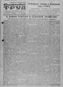 2. „Коллективный труд4 15 февраля 1951 года, № 14 (1439) К новым успехам в сельском хозяйстве! Обязательства участников областного агрономического совещания - ОКОНЧАНИЕ. Начало на 1-й стр. пая задача по внедрению мичуринской агробиологической пауки в колхозное и совхозное производство, повышению урожайности всех культур . Оправдаем это высокое доверие. Б у дем настоящими проводниками в жизнь советской агрономической науки . Поможем колхо- т зам и совхозам навести образцовый порядок в семенном хозяйстве, добьёмся выращивания высококачественных сортовых семян, обеспечим получение высоких устойчивых урожаев сельскохозяйственных культур во всех колхозах и совхозах. Возглавим борьбу за быстрейшее освоение травопольных, полевых и кормовых севооборотов. Будем организаторами закладки полезащитных лесных полос, садов и ухода за ними, строительства прудов и водоёмов. Товарищи колхозники, рабочие МТС и совхозов! Неустанно учитесь, овладевайте мичуринской агробиологической наукой, смелее внедряйте в производство опыт передовиков, дружно включайтесь в борьбу за подъём культуры социалистического земледелия. Работники сельскохозяйственной науки\ Смелее продвигайте научные достижения в производство; обоз о в , директора МТС и совхозов\ Всемерно укрепляйте трудовую дисциплину и улучшайте организацию труда. Максимально используйте *неограниченные возможности и все внутренние ресурсы для подъёма урожайности сельскохозяйственных культур . Боритесь за дальнейшее организационно-хозяйственное укрепление колхозов, МТС, за резкий подъём всех отраслей колхозного и совхозного производства, за повышение товарности и доходности общественного хозяйства. Мы отлично понимаем, что вып »лнение взятых обязательств потребует напряжённой работы специалистов сельского хозяйства, научных работников, колхозников, работников МТС и совхозов. На выполнение пх мы отдадим все свои силы, знания и опыт. Широко развернём социалистическое соревнование. Пусть 1951 год станет годом новых успехов в развитии сельского хозяйства. Успешное выполнение взятых обязательств будет нашим лучшим ответом на неустанную заботу советского правительства, большевистской партии и великого Сталина о дальнейшем подъёме сельского хозяйстП а р т и й н о е п р о с в е щ е н и е Качество и идейное содержание порвдоиымхзамш —главноев сети партийного просвещения Партия большевиков всег- имени Андреева ), Куш нарёв бщайте и пропагандируйте пе - ;ва и процветания колхозного редовой опыт мастеров сельского хозяйства, помогайте хлеборобам овладевать передовой а гробиологической наукой. Председатели колхостроя. Обсуждено и принято на областном агрономическом совещании. Центр культурно-массовой работы Шплово-Курьинский сельский клуб является центром культурно-массовой работы на селе. При клубе создан актив из сельской интеллигенции и колхозников. Опираясь на но- помощь актива, наш клуб проводит большую работу но подготовке к выборам в Верховный Совет РСФСР н смотру художественной самодеятельности. В клубе проводятся собрания и вечера молодёжи. Особенно с большим подъёмом прошли предвыборные собрания колхозников. На них были прочитаны лекции: «О международном положении», «Ленин и Сталин—создатели первого в мире социалистического государства», «Сталинская Конституция—самая д