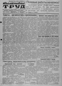 У \ Пролетарии*1всех стран, соединяйтесь! iGbluefctnueHMi Орган Карасунсного райнома ВНП(б) и районного Совета депутатов трудящихся, Новосибирсной области. «о 0 7 / f / с о ) I ВОСКРЕСЕНЬЕ, I Цена номера лг- г / ( IVOXJ | ; АПРЕЛЯ 1 951 Г 0 ДА | 1 5 копеек Полевые работы начались! Колхозники артели „Новая семья" закрыли влагу на 70 гектарах. Ни часа промедления. Смелее включайтесь в предпосевные работы. В три-четыре дня проведём прибивку влаги на парах и зяби! Советы—организаторы соревнования Укрупнение колхозов благоприятствует более производительному использованию машин, повышению производительности труда, успешному обеспечению артелей механизаторскими кадрами, а также решению других вопросов, связанных с организационной и хозяйственной работой. Однако некоторые сельские Советы допускают непозволительную оттяжку в решении многих практических задач, связанных с выполнением государственных планов и осуществлением мероприятий, способствующих поднятию урожайности. В районе уже начались предпосевные работы, а колхозы Троицкого сельсовета далеко не готовы к севу. В колхозе лПуть к коммунизму» до сих пор ещё не полностью отремонтирован сельхозинвентарь. План зимних агромероприятпй не выполнен. Рабочие волы и лошади не поставлены на подкормку. Такое тревожное положение нисколько не беспокоит председателя сельсовета тов. Михайлюк. После выборов в местные Советы состоялась всего одна сессия, на которой разбирались организационные вопросы. Депутаты сельского Совета не сплотили массы на успешное выполнение очередных задач, сами работы никакой не проводят. Постоянные комиссии при Совете также бездействуют. Никакой организационно- массовой работы среди населения не проводят и депутаты Хорошинского сельсовета. Председатель исполкома тов. Якименко старается сделать всё сам, не опираясь на широкий актив, поэтому ничего у него не получается. Если в колхозах этого Совета более удовлетворительно подготовились к весеннему севу, то благодаря лишь умелому руководству правлений артелей. А вот квартальный план по сбору налоговых платежей выполнен только па 34 процента. Финансово-бюджетная комиссия никакой разъяснительной работы среди населения не проводит. Она только числится на бумаге. Многие члены этой комиссии и депутаты сами не рассчитались с государством по налоговым платежам. В долгу перед государством остались т. т. Кривега, Плетнёва, Пче- линцев, Вольвач, Киселёв и другие. Колхозы Совета медленно завозят гранулированные удобрения. Этот вопрос остаётся незамеченным сельис- полкомом. Да что можно гово-| рить о работе депутатов, когда! за 3 месяца проведена только одна сессия сельского Совета. В колхозах имени Амангель- ды и «Новая семья» не проявляется достаточного внимания семенам. Они не очищаются, охрана организована плохо. Исполком Чёрно-Курьпи- ского сельсовета (председатель тов. Коростелёв) не потребовал от руководителей колхозов привести в надлежащий порядок семенной материал. Во многих колхозах района допущена затяжка с составлением производственных планов. •Основной причиной, порождающей невыполнение очередных задач, стоящих перед сельскими Советами, является бездеятельность постоянных комиссий при сельских Советах. Постоянные комиссии не собираются на очередные заседания, работают беспланово, к работе не привлекают актив сел