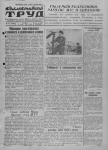Пролетарии всех стран, соединяйтесь! Т О В А Р ИЩ И К О Л Х О З Н И К И , Р А Б О Ч И Е М Т С И С О В Х О З О В ! У С Ь и л е Л с т и в н & й Помните, что сенокос—это одна из важнейших сельскохозяйственных кампаний. Готовьтесь к нему всесторонне, по-хозяйски. Этим вы создадите условия для дальнейшего подъёма общественного животнодства. а » Орган Нарасунсного райнома ВИП (б) и районного Совета депутатов трудящихся, Новосибирсной области. / I / O Л A f lARQ ) I ЧЕТВЕРГ, Цена номера N- W [ШОУ ) \ 31 МАЯ 1951 ГОДА 15 копеек Образцово подготовиться к сенокосу исилосованиюкоромв Приближается время сено- Slfcca и силосования кормов. -О т то го , как мы под готовим ся и проведем эту важнейш у ю сельскохозяйственную кампанию , во многом будет зависеть успешное выполнение трёхлетне го плана развития общ ественного про д у к ти вн о го животноводства . Чтобы вдоволь запасти для скота гр уб о го и сочно го корма об этом надо позаботиться сейчас. Каждый колхоз и совхоз должен поставить перед собой задачу— -заготовить по больше хорош е го сена и силоса. Для этого необходи мо своевременно привести в образцовый порядок, в цолную готовность все сен о у б о р о ч н ы е машины и инвентарь. Понимая важность этой под готовительной работы партийная организация и р у ководители колхоза «Крас- ное Знамя» сумели мобилизовать членов артели не только на успешное проведение весеннего сева, но и на дру гие неотложные дела. Здесь уж е отремонтиро- ны почти все сенокосилки , конные грабли, ручной ин вентарь, брички . Однако в целом но рай ону подготовка к сенокосу и силосованию кормов вн у шает серьёзную трево гу . В колхозе имени Будённо го из 20 сенокосилок отре монтировано только три, почти совсем не приступа ли к ремонту бричек . Ни в одной из артелей, о б сл уж и ваемых С тудёноьской МТС , не созданы бригады по ко р модобыванию, не приобретены кормозапарники и насосы для подачи воды. Д и рекция и партийная ор гани зация этой станции не занимаются вопросами под го товки к сеноуборке . Не видно роли механика по механизации трудоёмких работ на живо тноводческих фермах тов. Беззубенко. П ло хо готовятся к сенокосу колхозы имени Д зер ж ин ско го и «Путь к комм у низму». Артель имени Д зер ж инско го первой в районе ещё 5 мая выполнила план весеннего сева. С тех пор прошло уж е около месяца, а по под готовке к сеноубор ке здесь почти ничего не сделзно. Из 12 сенокосилок отремонтировано только по ловина, непригодны к работе конные грабли, брички. Позволительно спросить р у ководи гелей этого колхоза т. т. Иовенко и Черненко как они думают создать кормовую базу для общественного животноводства? Неудовлетворительно р у ководит под готовкой к сенокосу районный отдел сельского хозяйства. А гр о ном по кормодобыванию тов. Камерлов отсиживается в кабинете, в колхозах бывает редко, действительного положения дел не знает. Такое положение не те р пимо. Партийные и советские организации, р у ко во дители колхозов , МТС и совхозов обязаны в кратчай ший срок устранить имеющиеся недостатки и обеспечить полную , всестороннюю под го товку каждо го к о л хо за, М ТС , совхоза, полеводческой и тракторной бриг?- ды к работам по сенокош е нию и силосованию кормов. Ставропольский край. Кузнецы сельхозартели имени Сталина, Старо-Марьевского района, включившись в социалистическое соревнование, обязались досрочно и высококачественно отремонт