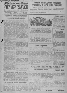 сех стран, соединяйтесь! t i l ? * Л ' ----------------------- ;— — -------------------------------- --- iC b »u e Jc /n u £ u $ w Орган Нарасунсного райнома ВНП(б) и районного Совета депутатов трудящихся, Новосибирсной области. № 6 5 (1490) ЧЕТВЕРГ, 16 АВГУСТА 1951 ГОДА Цена номера 15 копеек Каждый колхоз должен ежедневно участвовать сдаче хлеба государству Убрать урожай во-время и без потерь, досрочно выполнить государственный план хлебозаготовок— к этому должны быть сейчас направлены усилия всех хлеборобов района. График хлебозаготовок —нерушимый закон Ф Ф ш Уборка урожая в разгаре. Во многих колхозах скошено уже более половины хлебов. Совхоз «Октябрь» 14 августа полностью закончил косовицу и рассчитался с государством по хлебопоставкам. В сельхозартели имени Андреева с первых дней уборки по-хозяйски организована подработка зерна и сдача его государству. Колхоз каждую пятидневку перекрывает график вывозки хлеба на заготовительные пункты. Пятая бригада этого колхоза тов. Киселёва уже выполнила доведенный ей план по хлебопоставкам. Успешно выполняют график хлебосдачи колхоз «Пятилетка» и совхоз имени Дзержинского. Примеры этих и других хозяйств показывают, что мы не имеем никаких оснований отставать в темпах сдачи хлеба государству от передовиков. Но несмотря на это в целом по району график хлебосдачи третьей пятидневки августа выполнен всего на 37 процентов. Во многих колхозах на то ках скопилось большое ко личество хлеба, но сдача его государству организована плохо. Что, например, мешает руководителям сельхозартели имени Амангель- ды выполнять график хлебосдачи? Здесь хлеб лежит на токах, а на заготовительные пункты lie сдано ни одного килограмма. Председатель артели тов. Хаиров и секретарь парторганизации тов. Сарсенов сняли с себя ответственность за своевременное выполнение государственного плана хлебозаготовок, не организовали колхозников на до с рочное окончание хлебоуборки. Черепашьими темпами сдаёт хлеб государству колхоз «Маяк Ильича». Он из пятидневки в пятидневку срывает график хлебозаготовок. Во второй бригаде тов. Лубышева на токах лежит 140 центнеров зерна. Подработка его не организована. Председатель колхоза тов. Кравченко ссылается на отсутствие зерноочистительных машин. Но почему-то исправная машина «ОС-1» в третьей бригаде стоит без дела. Отсюда ясно, что хлебосдача сдерживается. Кое-где хлеб уже перестоял и начинает осыпаться. Долг тружеников колхозных полей убрать его в самые сжатые сроки и без потерь. Необходимо организовать круглосуточную работу машин, широко развернуть социалистическое соревнование среди комбайнеров, добиться ежедневного перевыполнения норм выработки, установить строгий контроль за качеством уборки. Всё зерно, поступающее от комбайнов, должно без задержки подрабатываться и вывозиться на заготовительные пункты. На до, чтобы каждый колхоз ежедневно участвовал в вывозке хлеба на государственные склады, выполнял и перевыполнял график хлебосдачи. Дол г партийных и ком сомольских организаций, руководителей колхозов, М Т С и сельских Советов провести уборку урожая в сжатые сроки, без потерь и досрочно выполнить план хлебопоставок. Надо так поставить работу, чтобы в закрома Родины зерно поступало непрерывным потоком, при любых условиях. Навстречу дню шахтёра Новыми трудовыми успехами встречают День шахтёра коллектив