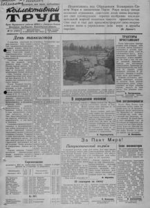 LУУГЧАЛЛЛЧ” fa jC fa jU U 0 y^ ^ '^ p o / iem a puu всех стран, соединяйтесь! iCoUueJcmu&mu Орган Карасунсного райнома ВКП(б) и районного Совета депутатов трудящихся, Новосибирсной области. № 72 (1497) ВОСКРЕСЕНЬЕ, 9 С ЕН Т Я Б Р Я 1951 ГОДА Цена номера 15 копеек День танкистов 9 сентября советский народ отмечает День танкистов—традиционный праздник I славных воинов бронетан- овых и механизированных войск Советской Армии и самоотверженных тружеников танкостроительной про- ■'>мышленности. Советские люди гордятся тем, что родиной танка является наша страна. В России гораздо раньше, чем где-либо, была спроектирована и построена первая вездеходная боевая машина —танк. Автором одного из первых’проектов этой машины был инженер •В. Д. Мен- делеев ,сын гениального рус с к о г о химика. После Великой Октябрьской социалистической революции в ходе [гражданской войны под непосредств е н н ы м руководством В. И. ^ Л е н и н а и И. В. Сталина было положено начало отечественному танкостроению и - заложены основы развития бронетанковых и механизированных войск. Значительное развитие бронетанковые и механизированные войска получили в годы предвоенных сталинских пятилеток, когда на базе индустриализации страны выросла оборонная промышленность, в том числе и танковая. Создание и развитие бронетанковых и механизированных войск, являющихся гордостью Советской Армии, неразрывно связано с именем товарища Сталина. Товарищ Сталин повседневно направляет творческую мысль наших конструкторов и танкостроителей, вдохновляет их на создание более мощных и совершенных боевых машин. Партия, товарищ Сталин воспитали замечательные кадры танкистов —мужественных воинов, смелых и отважных, безгранично преданных Родине. Во всех решающих сражениях Великой Отечественной войны танкисты принимали самое активное участие, проявляя беззаветное мужество, массовый героизм, высокое воинское мастерство. Заслуги танковых частей были высоко оценены великим вождём народов товарищем Сталиным. В приказе от 8 сентября 1946 года товарищ Сталин писал: «В годы Великой Отечественной войны бронетанковые и механизированные войска Советской Армии сыграли выдающуюся роль в деле разгрома фашистской Германии и империалистической Японии. На полях сражений советские танкисты показали беспримерное мужество и с честью выполнили свой долг перед Родиной». Ратные подвиги советских танкистов и трудовой героизм танкостроителей отмечены высокими правительственными наградами. Тысячи танкистов награждены орденами и медалями, а наиболее отличившимся присвоено звание Героя Советского Союза. Орденами и медалями награждены также тысячи танкостроителей. Наш народ вдохновенно строит коммунизм. Он сооружает величайшие в мире каналы, гидроэлектростанции, преображает по великому сталинскому плану природу. С таким же вдохновением он борется за мир во всём мире, возглавляя в этой борьбе всё прогрессивное человечество. Мирный труд советских людей, безопасность границ СССР—оплота мира и демократии—охраняет Советская Армия и её славные танкисты. Соревнование колхозов и МТС по накоплению грубых кормов и уборке урожая на 5 сентября (в процентах) Наименование колхозов и МТС Загот. кормов Уборка Наименование колхозов и МТС Загот. кормов Уборка Им. Калинина 76,4 80,1 Им. Жданова 50,1 77,0 Новый мир 75,3 98,0 Им. Куйбышева 50,0 78,3 Пятилет