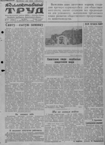 2. „коллективный труд* IV пленум райкома ВКП(б) На днях состоялся IV-й пленум райкома ВКП(б). С докладом «О выполнения решения VHI-й районнойпартийной конференции» выступил секретарь райкома партии * тов. Фелофь янов. —Восьмая партийная конференция,— говорит докладчик, —поставила перед районно! партийной организацией большие задачи— получить высокие урожаивсех сельскохозяйствен них культур, увеличить общественное поголовье скота и повысить его продуктивность, ещё выше поднять материальный уровень жизни колхозников. Партийные организации под руководством райкома ВКЩб) и ого бюро проделали значительную работу но выполнению решения партконференции. Тов. Фелофьянов подробно остановится на вопросе развития общественного животноводства врайоне. Впрошлуюзимовкунекоторые колхозыдопустили падёж скота, пытаясь оправдать это недостаточной обеспеченностью ферм кормами. Но фактыговорят обратное. Наименее обеспеченный кормами колхоз «Нуть к коммунизму» сохранил скот гораздо лучше, чемнекоторые другие колхозы с большим запасомкормов. Неудовлетворительно выполняется колхозами трёхлетний план развитияживотноводства в районе. Ещё нет ни одного колхоза, который бы выполнил план но крупному рогатому скоту и даже но свиньям и птице. План развития коневодства выполнен только 8 колхозами, а ноовцам—всеголишь 6 колхозами. Колхозы далеко отстали в выполнении плана накопления грубых и сочных кормов. Это также можно объяснить тем, что руководители многих колхозов встали на более лёгкий путь, рассуждая примерно так: «сколько накосим у себя столько и хватит». Бюро райкома ВКП(б) во-время не вскрыло эти вредные рассуждения и неподсказало колхозам правильный путь заготовки кормов. Поэтому и неудивительно, что район в целом выполнил план накопления грубых кормов только на 60,3 процента, а сочных—на 32 процента. —Не решена и такая важная задача,—говорит докладчик,—как повышение продуктивности животноводства. За 8 месяцев текущего года надой молока на фуражную корову составил по колхозам в среднем всего лишь 990 лптров. Не лучше положение и с настригом шерсти, а также с продуктивностью птпцы. Медленными темпами идёт подъём зяби. Это объясняется не столько засухой, сколько беспечным отношением руководителей МТС иколхозов к дел} заготовки земель под урожа1 будущего года. Далее докладчик подробно остановилсяна вопросе внутрипартийной работы. Райком партии усилил практическую помощь парторганизациям. Работники аппарата райкома и члены бюро стали чаще выезжать в колхозы, на местах оказывая практическую помощь. Чаще бывает в колхозах и районный партийный актив. Теперь уже нет таких фактов, когда представители райкома, приезжая на места, решали вопросы, обходя партийные организации. Далеко не все партийные организации занимаются вопросом роста партийных рядов. Плохо поставлена работа с кандидатами в члены ВКЩб). Об этом говорит .тот факт, чтоу iac имеется 146 кандидатов с просроченным стажем. Говоря о политической учёбе коммунистов, докладчикподроб- ю остановился на работе сети тртийного просвещения. Так, 13 31 кружка поисторииВКЩб) выполнили учебный план 25 кружков. Успешно закончили учебный год в 7 политшколах. Многие коммунисты, самостоятельно работающие над освоением марксизма-ленинизма, выполнили свои планы. Но есть и такие коммунисты, кото