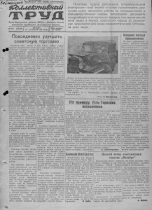 Пролетарии всех с т р а н , соединяйтесь! Орган Нарасунсного райкома ВНП (б) и районного Совета д е п у т а т о в трудящ ихся , Новосибирской области. " ш я ш т т ш т т т я т ^ т - ЩЩЯ— — т л ^ ш т - — — » » — i ■ - — - - - - — — № 83 (1508) 14 ЧЕТВЕРГ, ОКТЯБРЯ 1951 ГОДА Цена номера 15 копеек Почётная задача работников потребительской кооперации—ещё полнее и лучше удовлетворять растущий спрос населения района на промышленные и продовольственные товары, непрерывно расширять товарооборот и ассортименттоваров, тем самым внести свой вклад в борьбу советского народа за укрепление экономической мощи социалистической Отчизны, за дело мира. Повседневно улучшать советскую торговлю Большевистская партия и Советское правительство уделяют большое внимание улучшению и дальнейшему развитию советской торговли. Трехкратное снижение цен на продовольственные и промышленные товары, проведённое партией и правительством, дало возможность повысить покупательную способность населения и увеличить доходы трудящихся. Снижение цен явилось дальнейшим шагом в развитии советской торговли, в систематическом расширении товарооборота. Значительных успехов в торговле добился Карасукскнй райпотребсоюз (председатель правления тов. Ларин). В целях улучшения торговли и наиболее полного обеспечения населения необходимыми товарами, в системе райпотребсоюза только за летний сезон текущего года было построено в райцентре 2 новых магазина, капитально отремонтирован раймаг, переоборудован культмаг. В Благодатском т г ь и о построено 2 новых магазина, в Хорошин- ском сольно— 1 магазин, в колхозе имени Максима Горького, в рабкооне «Октябрь» оборудована пекарня и строится новый магазин, в Октябрьском сельпо построены новые склады для товаров и заготовок. Во многих торговых предприятиях произведён текущий и капитальный ремонт магазинов и лавок. Большую заботу об улучшении торговли проявляет дирекция совхоза им. Дзержинского (директор совхоза тов. Усенко). К 1 нобября здесь будут открыты вновь отстроенные кирпичный магазин и пекарня. Работники торговых организаций района включились в предоктябрьское социалистическое соревнование и добиваются более высоких показателей работы. Так, например, Карасукское сельпо (председатель тов. Сай- ковский) выполнило план товарооборота за III квартал на 103,3 процента, раймаг (директор тов. Пономаренко) и Богословское сельпо выполнили план 111 квартала по товарообороту на 101 процент. Выполнил план 111 квартала и рабкооп «Октябрь» (председатель тов. Зеленин). Хороших результатов в работе добился коллектив чайной райпотребсоюза. Чайная во Всесоюзном социалистическом соревновании заняла третье место, получив денежную премию. Сейчас чайная удерживает переходящее vкрасное знамя райпотребсоюза и Райкома союза. Коллектив чайной взял на себя обязательство к 1 ноября выполнить 10-ти месячный план, а к дню Сталинской Конституции -годовой производственный план, обязавшись повседневно улучшать качество блюд и культуру обслуживания. Однако ошибочно думать, что выполнением плана по товарообороту исчерпывается работа торговых организаций по обслуживанию трудящихся. Наоборот, наряду с выполнением плана, нужно полнее удовлетворять повседневный спрос па товары, расширять ассортимент товаров, бесперебойно торговать товарами первой необходимости. Послед