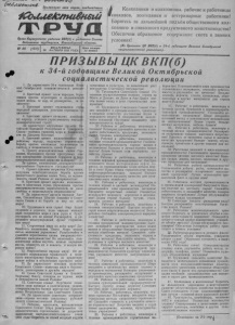 2. „Коллективный труд" 28 октября 1951 года, № 86 (1511) Призывы ЦК ВКП(б) к 34-й годовщине Великой Октябрьской социалистической революции (ОКОНЧАНИЕ. Начало на 1-й странице). 43. Колхозники и колхозницы, рабочие и работницы совхозов, зоотехники и ветеринарные работники! Поритесь за дальнейший подъём общественного колхозного и совхозного продуктивного животноводства! Обеспечим образцовое содержание скота в зимних условиях! 44. Работники сельского , лесного и водного хозяйства! Всемерно расширяйте полезащитные лесонасаждения и улучшайте уход за ними! Внедряйте новую систему орошения! Быстрее осваивайте правильные севообороты! Создавайте прочную основу для получения высоких и устойчивых урожаев! 45. Колхозники и колхозницы , рабочие и работницы хлопкосеющих колхозов , совхозов и М ТС ! Боритесь за быстрейшее проведение уборки урожая и выполнение планов заготовок хлопка! Дадим больше хлопка нашей социалистической Родине! 46. Работники советской торговли, кооперации, общественного питания! Всемерно развёртывайте советскую торговлю в городе и деревне! Повышайте к у л ь т у ру обслуживания советского потребителя! 47. Служащие государственных учреждений! У л у ч шайте работу советского аппарата, укрепляйте государственную дисциплину, чутко относитесь к запросам трудящ ихся ! 48. Работники научных учреждений и высшей школы! Боритесь за дальнейшее процветание советской науки! Смелее развивайте творческую критику и самокритику в научной работе! Обогащайте науку и технику новыми исследованиями, открытиями и изобретениями! Улучш ай те подготовку специалистов для народного хозяйства! 49. Работники литературы , искусства , кинематографии! Неустанно совершенствуйте своё мастерство! Создавайте новые высокоидейные художественные произведения, достойные великого советского народа! 50. Учителя и учительницы, работники народного образования! Повышайте качество учебно-воспитательной работы в школе, вооружайте учащихся знаниями основ науки! Воспитывайте нашу молодёжь в д у хе советского патриотизма, готовьте активных строителей коммун изма! 51. Медицинские работники! Улучшайте медицинское обслуживание населения! Совершенствуйте свои знания на основе передовой науки! Внедряйте достижения советской медицинской науки в практику! 52. Советские профсоюзы! Шире развёрывайте социалистическое соревнование за досрочное выполнение государственного плана каждым предприятием! Распространяйте опыт новаторов производства! Проявляйте неустанную заботу о дальнейшем повышении материального и культурного уровня жизни рабочих и служ ащ и х ! Да здравствуют советские профсоюзы —школа коммунизма! d 53. Советские женщины! Боритесь за новый расцвет экономики и культуры нашей социалистической Родины! Да здравствуют советские женщины—активные строители коммунизма! 54. Да здравствует Ленинско-Сталинский комсомол —передовой отряд молодых строителей коммунизма, надежный помощник и резерв коммунистической партии! 55. Советские юноши и девушки! Овладевайте н ау кой , техникой , культурой ! Будьте стойкими и смелыми, готовыми преодолевать любые трудности! Умножайте своим трудом успехи советского народа в строительстве коммунизма! 56. Пионеры и школьники! Упорно и настойчиво овладевайте знаниями! Готовьтесь стать активными борцами за великое дело Ленина—Сталина! 57. 