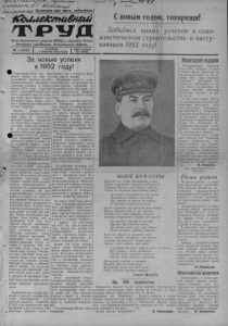 „Коллетвный труд* 1 января 1952года, № 1 (1530) 27 -ярайоная комсомольскаяконференция 27 и 28 декабря проходила 27-я районная комсомольская конференция. С отчётным докладом о работе райкома ВЛКСМ выступил секретарь райкома тов. Барило. Докладчик сказал: —XI съезд комсомола в своём решении поставил перед сельскими комсомольцами задачу— ещё активнее организовывать молодёжь на борьбу за неуклонный подъём сельского хозяйства, повышение урожайности полей, рост поголовья скота и повышение его продуктивности. Съезд призвал комсомольские организации бороться за дальнейшее хозяйственное укрепление колхозов и совхозов, добиваться своевременного выполнения планов сельскохозяйственного года. За отчётный период в районе проведена большая работа по укрупнению колхозов. Вместо 84 мелких сельскохозяйственных артелей у нас сейчас насчитывается 22 крупных колхоза. Это мероприятие большой государственной важности было связано с решением многих сложных вопросов. Немалую помощь районной партийной организации в этом деле оказали комсомольцы. Комсомольские организации сельхозартелей «Пятилетка», имени Калинина, имени Андреева, имени Тельмана за полтора года показали себя надёжной опорой правлений колхозов в решении трудных задач. Областной комитет ВЛКСМ высоко оцениI заслуги комсомольцев нашего района, нагрД див 108 комсомольцев-передови- ков почётными грамотами. Немаловажную помощь партийным и советским органам оказывают комсомольские организации в успешном проведении зимовки скота и подготовке к весеннему севу 1952 года. Дальнейшее повышение роли комсомольских организаций в хозяйственной деятельности колхозов и совхозов невозможно без серьёзного улучшения агрозоотехнической учёбы молодёжи. В прошлом учебном году из 54 агрозоотехнических кружков только в трёх закончили изучение программного материала. Это говорит за то, что районная комсомольская организация такой важный участок работы пустила на' самотёк. Дальше докладчик отметил, что райком комсомола неудовлетворительно руководил работой учительских и ученических комсомольских организаций, а это значительно отразилось на успеваемости учащихся. Не оказывалось должного внимания и пионерским организациям. Отделы райкома ВЛКСМсовершенно не интересовались работой вечерних школ. Большинство школ в прошлом учебном году в результате отсева учащихся было закрыто. Не лучше положение п нынче. XI съезд ВЛКСМ потребовал от комсомольских организаций решительного улучшения работы сети политпросвещения. Однако дело с политической учёбой комсомольцев в районе обстоит плохо. Об этом красноречиво говорит тот факт, что в' прошломгоду из 36 начальных политкружков закончило изучение программного материала только 8, из 9 политшкол—О, из 14 кружков но изучению биографии товарища Сталина справились с усвоением материала всего 6. В этом году учёба комсомольцев организована также неудовлетворительно. Например, до енх пор ещё нс работают кружки в -комсомольских организациях колхозов} имени Джамбула, «Путь Ленина», совхоза «Октябрь», в некоторых кружках и политшколах занятия часто срываются. За отчётный период значительно улучшилась организационная работа. За это время в ряды комсомола вступило 1.160 человек. Поело отчётного доклада председателя ревизионной комиссии тов. Соболевой развернулис