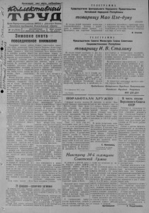 2, „Коллективный труд" 17 февраля 1952 года, № 13 (1542) Собрание прошло активно Организованно прошло отчетное собрание в колхозе «Красное знамя». Члены артели по- деловому обсудили'ИТОГИ прошлого года. Нс взирая щ лица, они справедливо критиковали правление колхоза, бригадиров полеводческих бригад, жнвот? поводов, вносили ценные предложения, направленные на дальнейший подъём артельного хозяйства. Отчётный доклад сделал председатель правления колхоза тов. Полозок. Ои отметил, что за отчётный период основные средства колхоза выросли на 48.670 рублей, повысилась денежная оплата трудодня, увеличилась выработка на трудоспособного колхозника. Она составляет 423 трудодня в среднем. — Весенний сев в 1951 году был проведён в лучшие сроки. — говорит он,— увеличились посевные площади колхоза. Неплохо поработали колхозники и в период сеноуборочной кампании. большую помощь в заготовке кормов нам оказала Ка- расукская машинно-тракторная станция.Нынче мы своевременно подготовили тёплую зимовку для скота, за животными организовали хороший уход. Работники животноводства, как доярки А. Михайлюк и Е. За- симонко, телятница II. Демешко, конюх Ф. Михайлюк, чабан 11. Полянский и другие честным отношением к труду завоевали и артели славу и уважение. Напряжённо поработали строители. За лето они отремонтировали все животноводческие помещения, построили клуб, контору колхоза, скотный двор и ряд других колхозных объек- тов. Правление сельхозартели в 1051 году проделало значительную работу цо организационно-хозяйственному укреплению колхоза. Увеличилась производительность труда, повысилась роль полеводческой бригады, как основной формы колхозного производства, а ото дало возможность работать в тесной связи с тракторной бригадой. Неплохо нынче поставлена учёба на трёхгодичных агротехнических курсах. Н работе правления ещё имеется ряд существенных недостатков. Об этом • говорили в своих выступлениях члены артели. Во-первых, в 1951 году колхоз не добился получения плановой урожайности, не выполнен трёхлетий план развития общественного продуктивного животноводства. — В колхозе 10 человек не выработало минимум трудодней, — говорит тов. Кулинпч,— но правление действенных мер не принимало., бригадиры полеводческих бригад^ мало занимались упорядочением трудовой дисциплины, поэтому имелись случаи неявки на работу. Колхозники тт. Гуевский, Шппрко, Назаренко, Засименко и другие в своих выступлениях критиковали ревизионную комиссию. Ревизионная комиссия в течение года работала недостаточно, мало вникала в учёт н расходование трудодней. Например, бригадиртов. Телнч- ко безобразно относился к учёту труда колхозников. Однако он остался безнаказанным. Предложения комиссии не доводились до конца. Комиссия не уделяла должного внимания контролю за правильностью расходования кормов, не проводила ревизий подотчётным лицам. Бывший заведующий Студё- иовским зооветпунктом Астахов за оказанные услуги брал с колхозов продукты ц денежную плату. Jan , в колхозе имени Дзержинского за кастрацию животных в апреле 1951 года им взято 70 килограммов пшеницы. В этом же месяце за такую же услугу в колхозе «Новый мир» Шофёр тов. Коротков и тов. Григорьев говорили о том, что в колхозе плохо работали автомашина, мельница и плотницкая мастерская. Это послужило одной из причин невыполнения д
