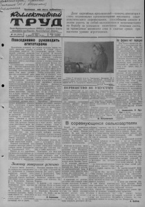 Пролетарии всех стран, соединяйтесь ! 1bCuueJ&nu&mis Орган Нарасунсного райнома ВНП(б) и районного Совета депутатов трудящихся. Новосибирской области. № 7 7 И 6 6 1 ) I ЧЕТВЕРГ, I Цена номера п XX (IOOIJ | 20 МАРТА 1952 ГОДА | 15 копеек Долг партийных организаций—помочь агитаторам стать подлинными организаторами массового социалистического соревнования, способными словом и делом увлечь за собой колхозников и механизаторов на борьбу за успешное окончание зимовки скота, за проведение весеннего сева в сжатые сроки при высоком уровне агротехники. ✓ Л Повседневно руководить агитаторами Важнейшим условием нашего движения вперёд, к коммунизму является всемерное усиление коммунистического воспитания народа Эта задача всегда являлась йявляется одной из главных задач работы партийных организаций. От правильно поставленной массово-политической работы зависит успех выполнения производственных задач. Чем выше уровень массово-политической работы, тем лучше успехи в хозяйственных делах. Проводниками политики партии в массы, разъясняющими постановления партии и правительства среди населения, являются агитаторы. Их долг—постоянно информировать население, держать его в курсе событий, происходящих как в нашей стране, гак и за рубежом. Руководители партийных организаций должны повседневно направлять деятельность агитаторов и оказывать им помощь в работе. Парторганизация колхоза «Красное знамя» (секретарь тов. Красильников) постоянно руководит агитаторами. Агитаторы тт. Савонин, Назаров, Савонина и другие закреплены за животноводством. Они проводят беседы среди работников ферм, выпускают стенные газеты, «боевые листки», устраивают читки газет. Руководитель агитколлектива тов. Красильников регулярно проводит с агитаторами инструктивные совещания и семинары, на которых конкретно ставит перед ними задачи. Неплохо поставлена агитационно-массовая работа в совхозе имени Дзержинского, Хорошинской МТС. Однако не все партийные организации повседневно руководят агитаторами. Слабо поставлена агитационно-мас-! совая работа в парторгани-] зэциях колхозов имени Молотова и «Новая семья», пищепрома, артели «Энергия» и других. В колхозе имени Молотова (секретарь тов. Дёменко) семинары агитаторов созываются от случая к случаю, агитаторы редко проводят беседы среди населения, нет наглядной агитации на фермах. В колхозе «Новая семья» агитаторы работают кампанейски. Сейчас колхозники, работники МТС и совхозов готовятся к проведению весеннего сева—важнейшей кампании в сельском хозяйстве. Долг партийных организаций—широко развернуть массово-политическую работу среди тружеников сельского хозяйства, мобилизовать их на успешное выполнение социалистических обязательств с работниками сельского хозяйства Андреевского района. Партийные организации должны расставить агитаторов на всех участках работ, обеспечить их необходимыми материалами. Работу агитаторов нужно поставить так, чтобы их голос доходил до каждого труженика полей, до каждого работника животноводства. Центрами массово-политической работы в поле сделать красные уголки в полевых станах и тракторных вагончиках, которые необходимо хорошо оборудовать наглядной агитацией, снабдить газетами, журналами, художественной и политической литературой и т. д. Необходимо решить вопрос о культурном об