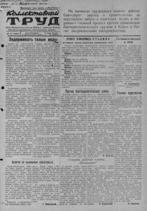 iМл^иа j / i / &cK/& @frU /aJ Jutf^ot* £ h n & < G . Пролетарии всех стран, соединяйтесь! jC b U u e A y n a tiH sa i Орган Нарасунсного райнома ВНП (б ) и районного Совета депутатов трудящихся, Новосибирской области. N* 27 (1556) | ВОСКРЕСЕНЬЕ, 6 АПРЕЛЯ 1952 ГОДА Цена номера 15 копеек \ Задерживать талые воды Борьба за накопление влаги в почве имеет серьёзное значение в повышении урожайности полей. Засуха минувшего года истощила почвы, а это обстоятельство вызывает нынче потребность накопления большого количества влаги Весна предполагается дружная, таяние снега может закончиться в 3-4 дня. Поэтому большое количество воды, которое может образоваться от быстрого таяния снега, почва будет не в силах сразу впитать. Снеговые воды могут уйти в овраги, реки и болота, размывая и унося с собой верхний слой почвы и питательные вещества. В настоящее время важнейшим мероприятием должна явиться борьба по задержанию талых вод, кото рую обязаны организовать колхозы, совхозы, М ТС . Организация распашки тракторными и конными снегопахами снега поперёк склонов, постройка снежных и ледяных навалов, прикаты- вание снега катками, разбрасывание золы— все эти методы задерживания влаги должны уже сейчас проводиться на полях. Передовые колхозы района уже приступили к задержанию талых вод. Так, например, в сельхозартели имени Тельмана на задержании талых вод работают три конных снегопаха, груп па колхозников разбрасывает золу и делает снежные валы. За два дня колхоз провёл задержание влаги на площади в 75 гектаров. Приступили к задержанию талых вод в колхозах «Жол Сталина», имени Жданова. Клохозники работают на поделке снежных валов поперёк склонов, распахивается снег. Однако многие колхозы до сих пор не приступили к этому важнейшему мероприятию. Некоторые руководители объясняют свою медлительность ровным рельефом земельных массивов, из которых якобы вода не может никуда уйти. Эти ничем не обоснованные отго ворки могут привести к то му, что колхозы ^упустят время для задержания необходимой влаги. Старшие агрономы М Т С , участковые и агрономы колхозов ещё мало сделали в этом отношении. Старший агроном Хорош инской М Т С тов. Шаравин редко бывает в колхозах ,не занимается ор ганизацией задержания т а лых вод, отсиживается в к а бинете. Ничего не делается по задержанию талых вод в совхозе «Октябрь», в кол хозах имени Андреева, «Вперёд к коммунизму" и других. Д ол г партийных организаций— организовать социалистическое соревнование на задержании талых вод, вести решительную борьбу с отсталыми мнениями, мешающими повышению уро жайности. Задача руководителей колхозов, совхозов и М Т С — уже сейчас готовиться к прибивке влаги. Организовать проверку наличия борон, ремонт неисправных, довести производственные задания бригадам и отдельным труженикам. Товарищи колхозники! З а держивайте талые воды, это во многом поможет повысить урожайность полей! Товарищи механизаторы и рабочие совхозов! Полнее используйте машины на задержании влаги. Помните: чем больше влаги в почве, тем выше урожай. Борются за выполнение обязательств Среди доярок артели «Красное знамя» шпроко развернулось соцпалпетпческоо сорев- новавяе в честь Первое мая. Они борются за надой молока от каждой коровы нс менее 1.800 литров в год. На ферме дойного гурта имеется доска показателей, где записаны фамплпн доярок, плановые задания, их 