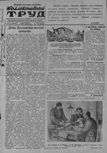 & / ta42+%ci/ o f / с Пролетарии всех стран, соединяйтесь! 1СЬиае4сгпи&тй Орган Нарасунсного райнома ВНП(б) и районного Совета N* 3 5 (1564 ) ВОСКРЕСЕНЬЕ, Цена номера 4 МАЯ 1952 ГОДА 10 копеек „Печать—самое сильное оружие, при помощи которого партия ежедневно, ежечасно говорит с рабочим классом на своём, нужном ей языке. Других средств протянуть духовные нити между партией и классом, другого такого гибкого аппарата в природе не имеется**. И. СТАЛИН. День большевистской печати Сорок лет назад, 5 мая 1912 года, вышел в свет первый номер массовой большевистской газеты «Правда». Она была основана согласно указанию В. И. Ленина, по инициативе И. В. Сталина. Под руководством товарища Сталина был подготовлен первый номер газеты. Выход массовой большевистской газеты «Правда» явился настоящим праздником трудящихся. В честь появления «Правды» было решено считать 5 мая Днём большевистской печати. Этот день стал в нашей стране боевым смотром сил советской печати, ведущей неустанную борьбу за торжество коммупизма. За годы советской власти почать в нашей стране выросла в могучую силу. В СССР издаётся свыше 8.000 газет с разовым тиражом около 40 миллионов экземпляров. Газеты выходят на языках всех народов Советского Союза. Большевистская печать глубоко идейна, правдива, подлинно народна. Она является самым сильным, самым острым " оружием нашей партии. Большевистская печать выступает как коллективный пропагандист, агитатор и организатор масс. Она неустанно несёт в широкие массы идеи Ленина—Сталина, сплачивает наш народ на борьбу за осуществление великих задач коммунистического строительства Большевистская печать яви- - лась могучим оружием партии в борьбе за всемерно-и1тори ческпе преобразования нашей страны. В послевоенные годы советская почать и её многомиллионная армия авторского актива, рабочих и сельских корреспондентов помогали партии организовать всенародное социалистическое соревнование за досрочное выполнение пятилетки. Наша печать активно борется за новые достижения * промышленности, сельского хозяйства, социалистической куль туры, за создание гигантских каналов и гидроэлектростанций, за преобразование природы, за воплощение в жизнь великих сталинских предначертаний о строительстве коммунизма. Большевистская печать верно служит советскому народу, великому делу коммунизма. Ни в одной капиталистической стране нет п не может быть такой свободы печати, как в СССР; ни в одной стране не выходит такого количества газет для рабочих и крестьян, как у нас. Наши газеты ведут всю свою работу при активном участии самих рабочих, крестьян, советской интеллигенции. Большие и ответственные задачи стоят перед болыпо* вистской печатью. Наши газеты призваны на своих страницах разъяснять политику партии и Советского правительства, воспитывать трудящихся з духе советского патриотизма и дружбы народов, мобилизовать их на успешное выполнение всех заданий государства. Стенные колхозные газеты— боевой отряд нашей печати. Они призваны на ярких примерах местной жизни широко освещать социалистическое соревнование тружеников сельского хозяйства за повышение урожайности всех культур, всемерное увеличение общественного поголовья скота и рост его продуктивности, за дальнейшее укрепление и всестороннее развитие общественного хозяйства колхозов. Колхозная печ