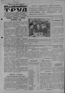 / 7yooc+i ла / g lc '^ c ^ ^ c DиЛ u^u o . , Пролетарии всех стран, соединяйтесь! 1СЬиие&пивн$ш t V -ч Орган Нарасунсного раВкома ВИП (б) и районного Совета депутатов трудящихся, Новосибирсной области. № 48 (1577) I 19 ию н я Т1952 гопа Цена номера 10 копеек Задача партийных организаций— усилить контроль за подготовкой школ к новому учебному году, сделать всё необходимое для завершения этой работы к 1 августа. Готовить школы к новому учебному году Уш ли на летний отдых учащиеся начальных школ. И ду т к завершению экзамены в семилетних и средних школах. Наступил самый благоприятный период для подготовки школ к новому, учебному году. Во всех школах необходимо начинать ремонт помещений, мебели, приобретение учебных пособий ещё задолго до окончания занятий, привлекая к этой важнейшей работе широкую общественность. Многие директора и заведующие школ, председатели сельских Советов по- настоящему организовали ремонт школ, заготовку топлива, приобретение -учеб ных пособий. Так, например, полностью подготовлена к новому учебному году Анисимовская семилетняя школа (директор тов. Плетнёва). Полным ходом развернули капитальный ремонт в Кучугурской семилетней школе (директор тов. Тере щенко): здесь достраиваются классная комната и коридор, ремонтируется мебель* заготавливается топливо. Отремонтированы Глубо- ковская, Ново-Буговская и фермы № 2 совхоза Д зер жинского начальные школы. Полностью заготовлено и подвезено топливо в Б о го словской семилетней школе (директор тов. Реуцкий). Н о наряду с этим имеют место факты несерьёзного отношения к подготовке школ к новому учебнбму году ср стороны отдельных руководителей ш кол и председателей сельских Советов. Д о сих пор не приступили к ремонту в Хорошин- сксй семилетней школе (директор тов. Овдиенко, председатель сельсовета тов. Качан), хотя школу нужно заново перекрывать. Такое же положение и в Троицкой семилетней школе (директор тов. Фурсенко, председатель сельсовета тов. Михэйлюк). Большая работа предстоит по ремонту и отделке Ка- расукской средней школы. Наружние стены здания нужно штукатурить, производить побелку, ремонт школьной мебели. Но директор школы тов. Ш есто палов в председатель поссовета тов. Попов ограничились пока заключением договора, работы же ещё не организованы. Ничего не делается по подготовке Морозовской семилетней школы (директор тов. Сыриков). Не ремонтируются парты, столы, классные доски, не заготавливается топливо. Впереди ещё много работы по ремонту школ и подготовке их к новому учеб ному году. Н уж но немедленно организовать ремонт школьных зданий, классной мебели, пополнить кабинеты и лаборатории учебнонаглядными пособиями, оборудованием, а би б ли о те ки - литературой. Н уж но позаботиться о покупке необходимых учебников, тетрадей. Не нужно забывать и о ремонте квартир учителей, интернатов. Задача партийных организаций— усилить контроль за ходом подготовки школ к новому учебному году. Привлекать к этому делу р у ководителей советских, хо зяйственных, комсомольских организаций и всю общественность. Сделать всё необходимое, чтобы организованно начать новый учебный год в ш ко лах района, чтобы дети пришли в светлые, тёплые, уют ные школы. Кировская область С каждым годом увеличиваются доходы от общественного хозяйства сельхозартели .Красный Октябрь* Вожгальского района. В минувшем году 