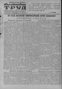 2. „Коллективный труд' 12 октября 1952 года, № 82 (1611) XIX СЪЕЗД ВСЕСОЮЗНОЙ КОММУНИСТИЧЕСКОЙ ПАРТИИ (большевиков) (Продолжение). Делегаты вто же время подвергают критикенедостатки вдеятельности партийных, советских и хозяйственных организаций, указывают на нерешенные вопросы. Первым выступает впрениях тов. Кэ б и н (Эстонская ССР). Он говорит о том, что под руководством Центрального Комитета ВКЩб) и лично товарища Сталина, при огромной помощи всего советского народа и особенно великого русского народа эстонский народ в короткий срок развил свою экономику и культуру в таких масштабах, которые позволили превратить Эстонию из страны аграрной, с мелким хуторским крестьянским хозяйством, из бывшего придатка империалистических держав, в республику высоко развитой индустрии и крупного социалистического сельского хозяйства. Председательствующий предоставляет слово тов. Л. II. Бе рия . Одного из ближайших соратников великого Сталина съезд встречает бурными, продолжительными аплодисментами. В жизни нашей партии и советского народа, говорит тов. Берия, за период с XVIII до XIX съезда особое место занимают два события. Первым из них является Великая Отечественная война. В этой войне решался вопрос о судьбе , нашей Родины и о судьбах государств н народов" Европы и Азии. Советский Союз отстоял свою независимость, наголову разбил врага и тем спас человечество и ого цивилизацию. Вдохновителем н организатором великой победы советского народа была Коммунистическая партия, руководимая товарищем Сталиным. Другим величайшим событием в жизни партии и советского народа, говорит тов. Берия, является новый мощный подъём народного хозяйства, который дал возможность повысить уровень нашей промышленности по сравнению с довоенным в 2,3 раза. Значительную часть своей речи, выслушанной делегатами с напряженным вниманием пс большим интересом, тов. Берия посвящает невиданному в истории расцвету социалистических наций, что является выражением торжества ленинско- сталинской национальной политики нашей партии. Об огромном размахе хозяйственного и культурного строД Н Е В Н И К С Ъ Е З Д А птельства в молодой Калининградской области говорил в своем выступлении тов. Ч е р- н и ше в (Калининград). В области создана -крупная промышленность, оснащенная передовой советской техникой, успешно развивается социалистическое сельское хозяйство. После короткого перерыва председательствует тов. Л. М. Ка г а но вич . Он предоставляет слово тов. Ки с е л е в у (Ростовская область). Значительную часть своего выступления т. Киселёв посвящает вопросам развития орошаемого земледелия. Он подчеркивает, что орошение сотен тысяч гектаров земель в области выдвигает ряд новых задач. Необходимо серьёзно улучшить организацию дела строительства оросительных систем и освоение орошаемых земель. На трибуне т. Ния з ов (Узбекская ССР). Он говорит об исключительной работе, которую проявляют о советском Узбекистане партия, правительство, лично товарищ Сталин. За последние 10 лет в республике бурно развивалась промышленность. Больших успехов достиг Узбекистан в хлопководстве. Отмечая недостатки вдеятельности местных организаций, т. Ниязов в то же время критикует Министерство хлопководства СССР, которое медленно решает вопросы ирригационно-мелиоративного строительства, перехода на новую систе