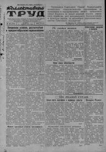 Пролетарии всех стран, соединяйтесь? iCbUueJcm uSHGiii Орган Карасукского райкома Коммунистической партии Советского Союза и районного Совета депутатов трудящихся, Новосибирской области. N1 90 ( 1619) I и НОЯБРЯР1952 ГОЛА | ^ еН° ^ Н0П' г ш ’ я т и п я » . | ■ Трудящиеся Советского Союза! Развертывайте всенародное социалистическое соревнование за выполнение и перевыполнение пятого пятилетнего плана! Боритесь за новый мощный подъём народного хозяйства, рост материального благосостояния и культуры народа, за дальнейшее укрепление могущества Советского государства! (Из Призывов ЦК КПСС к 35-й годовщине Великой Октябрьской социалистической революции). Закрепим успехи, достигнутые в предоктябрьском соревновании С большим патриотическим и трудовым подъёмом встретили трудящиеся нашего района 35-ю годовщину Великой Октябрьской социалистической революции. Этот день ознаменован новыми победами в мирном строительстве. Воодушевлённые решениями XIX съезда партии, рабочие и колхозники в честь 7 ноября брали на себя повышенные обязательства. Своё слово они сдержали. Иначе и не могло быть. Труженики района, как и весь советский народ, сейчас борются за то, чтобы досрочно выполнить пятую пятилетку и этим самым сделать ещё крупный шаг вперёд по пути к светлому будущему—коммунизму. С хорошими достижениями пришли к всенародному празднику шоферы Карасукской автобазы. Они уже выполнили годовой план грузоперевозок. А некоторые водители грузовых машин, как тов. Одинцов, Морозов, Лукашенко и другие работают в счёт 1954- 1955 годов. Коллектив автобазы с каждым днём наращивает темпы в работе. Он полон решимости завершить пятилетку в четыре года. Всё шире развёртывается социалистическое соревнование среди членов артели «Новое производство». Решения XIX съезда партии они встретили выполнением годового производственного плана и завоевали первенство среди рабочих артелей облпромсоюза. Сейчас артель борется за выпуск продукции на 200 тысяч рублей сверх плана. С небывалым подъёмом в предпраздничные дни трудились рабочие Чёрно- Курьинского маслозавода, совхоза имени-Дзержинского, завода молочных консервов, колхозники сельхозартелей имени Андреева, «Красное знамя» идругие. Но не следует успокаиваться на достигнутом. Зазнайство и самодовольство не к лицу советским людям. Они готовы приложить все свои силы на достижение новых успехов. Результаты предоктябрьского соревнования могли быть гораздо лучше, если бы в работе отдельных предприятий, МТС и колхозов не имелось серьёзных недостатков. Взять к примеру Студёновскую МТС. В машинно-тракторной станции соревнование организовано формально. Ежедневные задания механизаторам не доводятся, не подводятся регулярно итоги работы, не распространяется опыт передовиков. В результате МТС не выполнила доведенный план ремонта тракторов. Большим тормозом в работе является и то, что, имея все возможности, МТС не организовала ремонт машин по узловому методу. Такое же положение и в Хорошинской МТС. Совершенно не уделяют внимания социалистическому соревнованию партийная организация и правление колхоза «Норая семья». А это сказалосъ на подготовке артели к зиме. Животноводческие помещения колхоза к стойловому периоду подготовлены неудовлетворительно, медленно подвозятся корма к фермам и т. д. Трудящиеся нашего района сейчас с нов