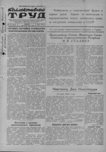 Пролетарии всех стран, соединяйтесь! 4СЬиие^сгпивн$ш Т Р У Д Орган Карасукского райкома Коммунистической партии Советского Союза и районного Совета депутатов трудящихся, Новосибирской области. N* 96 (1625) | 4 ДЕКАБРЯЕ1952 ГОДА | ^elta ^ Н0П‘ УЛУЧШИТЬ ПАРТИЙНОЕ РУКОВОДСТВО КОМСОМОЛЬСКИМИ ОРГАНИЗАЦИЯМИ С огромным воодушевлением встретила советская молодёжь решения XIX съезда Коммунистической партии Советского Союза, речь товарища И. В. Сталина, его гениальный труд «Экономические проблемы социализма в СССР». Эти исторические документы комсомольцы и молодёжь воспринимают как великую программу борьбы за победу коммунизма. Руководствуясь указаниями X пленума ЦК ВЛКСМ, комсомольские организации решения XIX съезда партии ложат в основу своей деятельности. Чтобы успешно справиться с этими великими задачами, необходимо поднять уровень комсомольской работы на новую, более высокую ступень, решительно преодолевать имеющиеся недостатки. Однако, как показал недавно отчёт РК ВЛКСМ на бюро райкома партии, в деятельности районной комсомольской организации имеют место серьёзные ошибки и недочёты. Иа недавно прошедших отчётно-выборных собраниях в первичных организациях комсомольцы также критиковали райкомВЛКСМзато, что он мало связан с молодёжью и комсомольскими организациями, неоперативно, а порой неквалифицированно направляет их деятельность. Некоторые отделы райкома всё ещё работают без должного напряжения, мало проявляют самостоятельности и инициативы. Плохо поставлен в райкоме контроль за исполнением принимаемых решений, живая организаторская работа на местах порою подменяется канцелярщиной. Комсомолявляется резервом и помощникомпартии вовсемгосударственном и хозйяственном строительстве. Сила комсомола— в партийном руководстве. Правильно понимая это, секретари партийных организаций колхоза имени Жданова, Октябрьской МТС, райпотребсоюза считают руководство комсомольскими организациями своей повседневной обязанностью.Онп помогают комсомольским организациям правильно расставить своп силы, привлечь молодёжь к активному участию в производственной и общественной работе. Повседневно руководят комсомольской работой партийные организации Хорошинской МТС и колхоза «Новая семья». Но многие секретари партийных организаций сводят руководство комсомолом к даче отдельных указаний п поручений, не вникая в суть работы комсомольских организаций, не нацеливают молодежь на решение основных задач, не контролируют их работу. Подобное «руководство», например, осуществляется в колхозе имени Тельмана. Здесь комсомольцы предоставлены самим себе. Секретарь парторганизации тов. Смакотпн за весь отчетный периодни разу не присутствовал на комсомольском собрании, не помог в составлении плана работы комсомольской организации. Севсршенно не интересуется запросами молодёжи и председатель правления коммунист тов. Крупа. А ведь в этой артели молодёжь является решающейсилой в выполнении любых хозяйственных работ. С таким же положением можно встретиться в колхозах имени Амангедьды, «Новый мир», совхозе «Октябрь». Выполнение задач, поставленных XIX съездом партии, требует всемерного улучшения партийного руководства’ комсомолом. Первичные парторганизации обязаны повседневно заниматься вопросами комсомольской работы, расширять через к